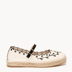 Alpargata plana de lona CAMPANILLA BORDADA NEGRO