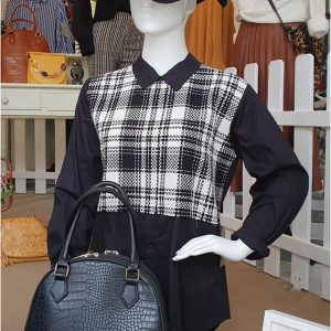 Blusa mujer bordado frontal cuadros