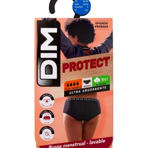 Dim Protect braga menstrual negra lavable de algodón orgánico para flujo medio modelo bdp talla l
