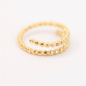 ANILLO MUJER ACERO DORADO DOBLE CHAPA CON BOLITAS