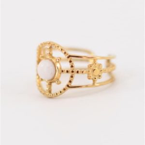 ANILLO MUJER ACERO DORADO PIEDRA BLANCA AJUSTABLE