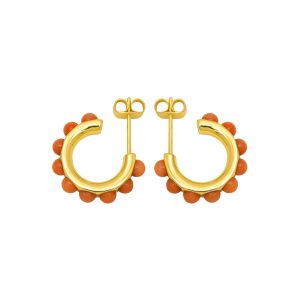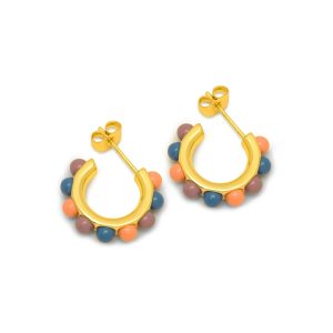 Par de pendientes bañados en oro FLOWER MIX CORAL