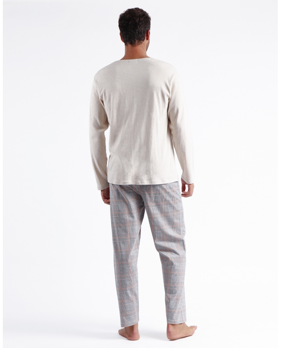 * Pijama de punto de algodón, de manga larga, cuello redondo y pantalón largo.