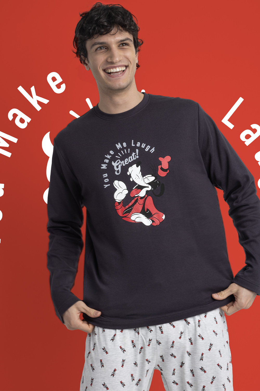 Si eres de los que creen que la comodidad no está reñida con el estilo, este pijama para hombre de Disney by ADMAS te encantará 😍. Diseñado con un toque de humor, ternura y nostalgia, este conjunto inspirado en Goofy (Tribilín) combina la calidad y el confort que caracteriza a ADMAS, con la magia inconfundible de Disney ✨.