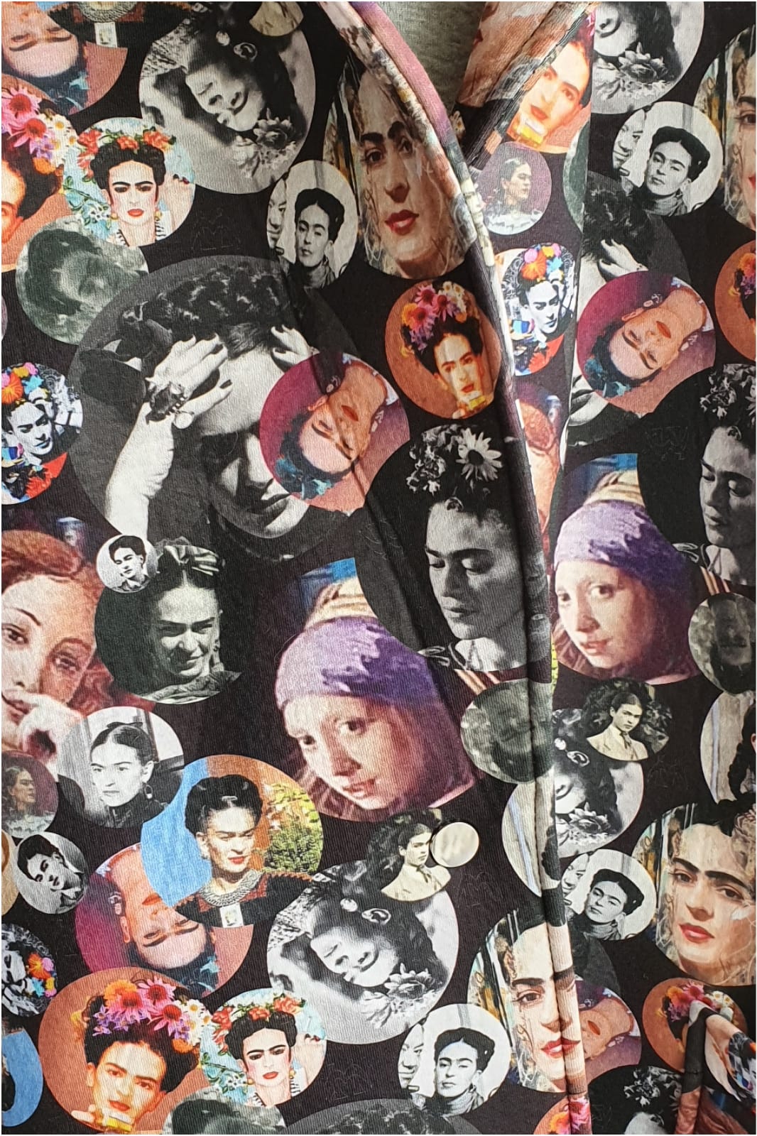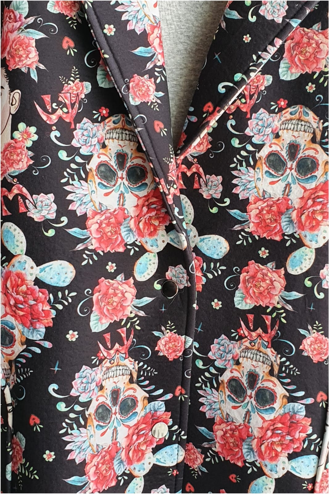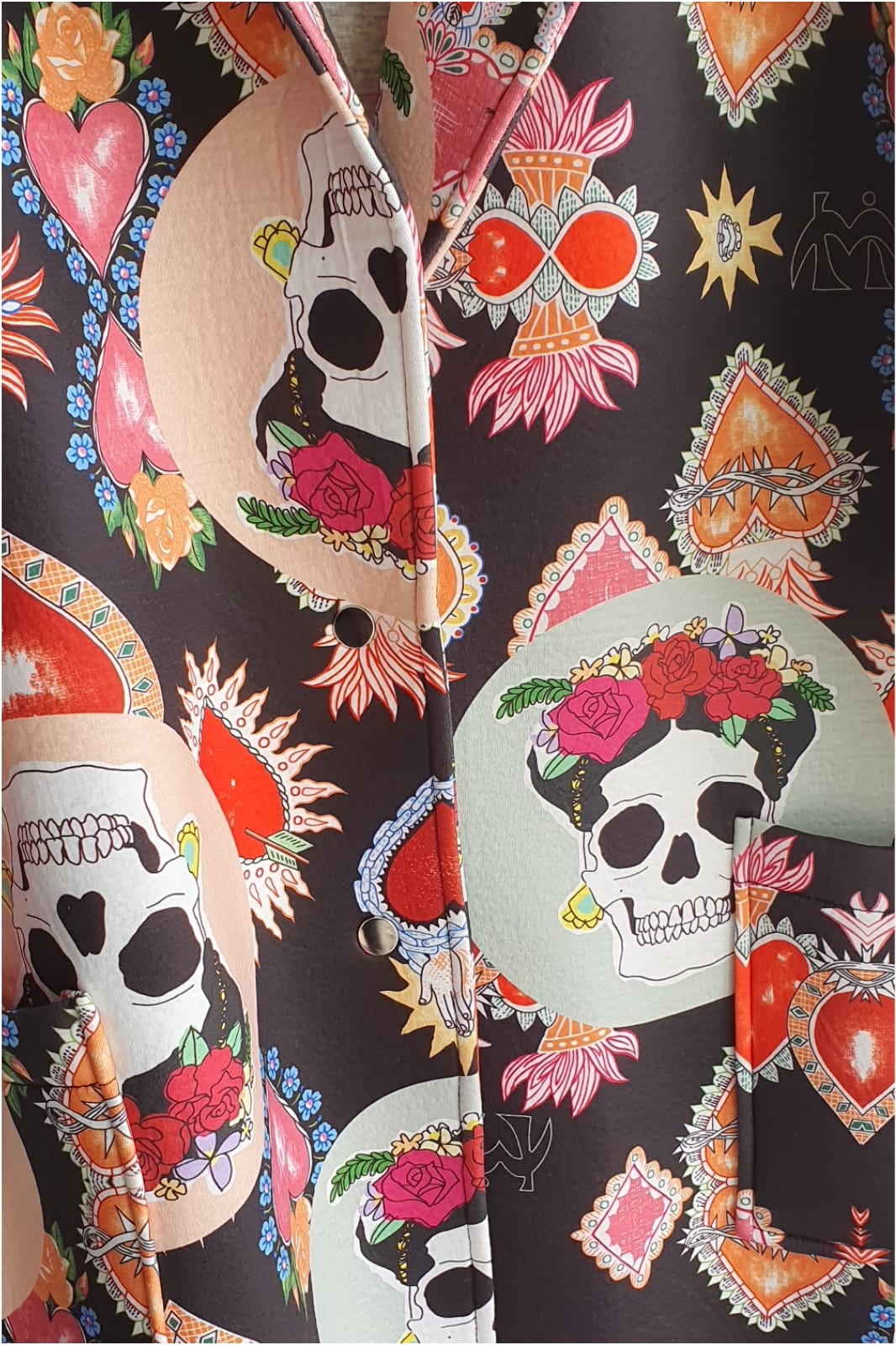 Por otro lado, el neopreno al tacto añade un toque moderno y contemporáneo al diseño del abrigo Frida. Este material elástico y resistente proporciona un ajuste ceñido y favorecedor, realzando la silueta femenina de manera elegante.