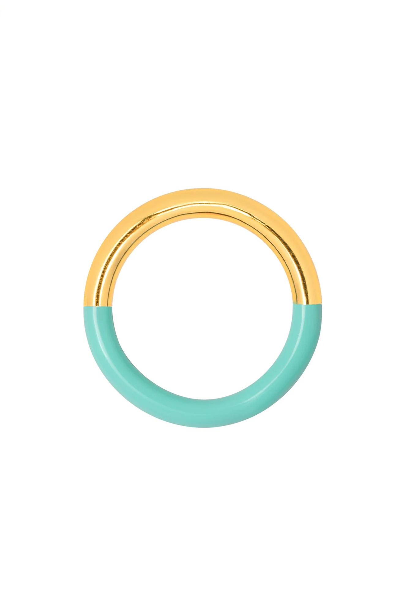 Anillo con base de acero inoxidable chapado en oro de 18k con esmalte aplicado a mano.