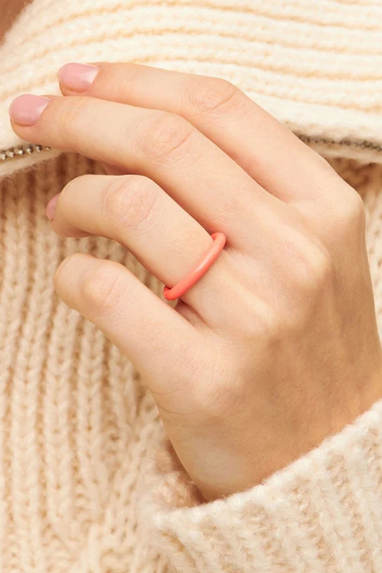 Anillo esmaltado a mano en un precioso tono coral.
