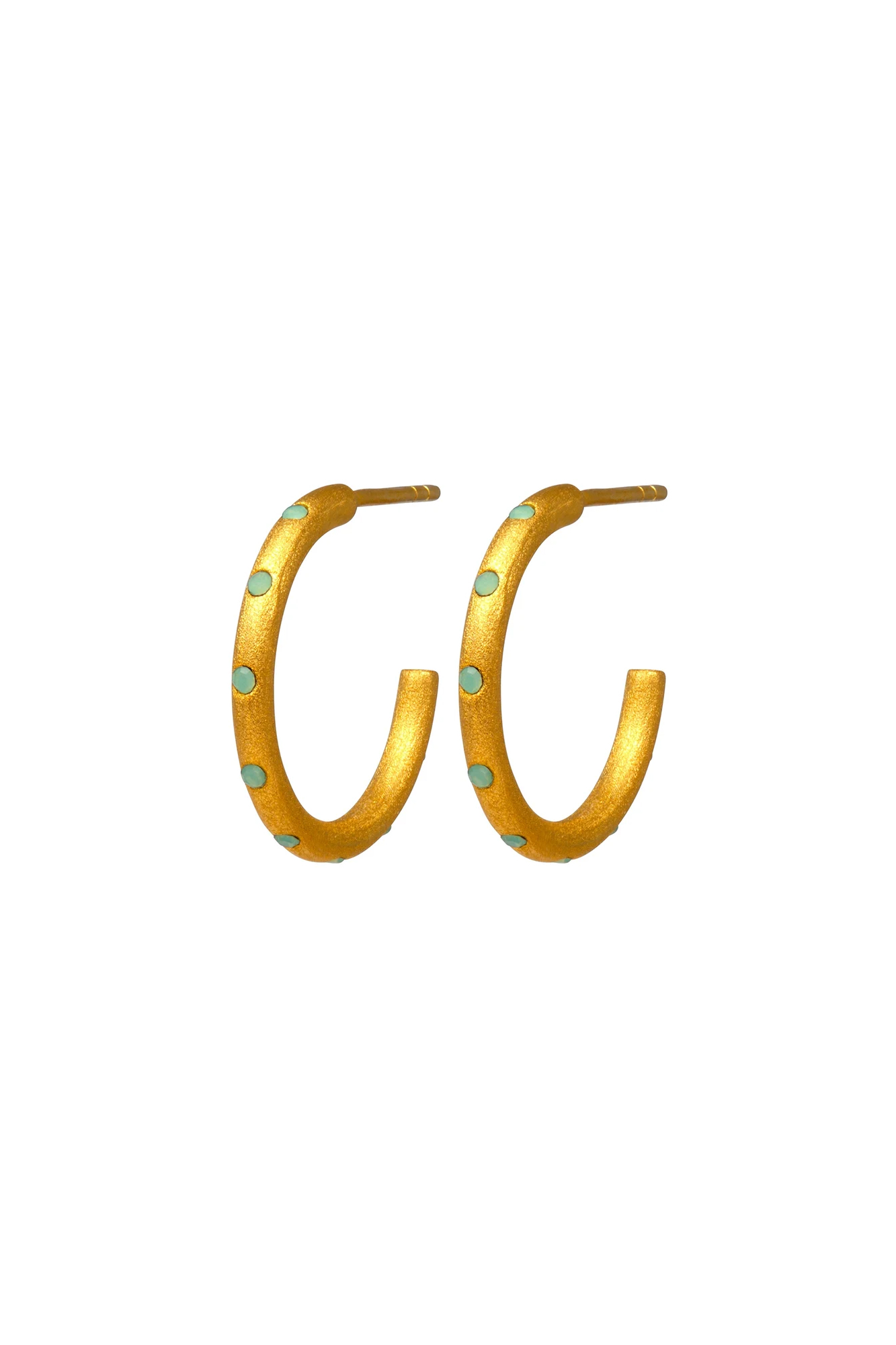 Aros dorados de tamaño medio con cristales turquesa engarzados.