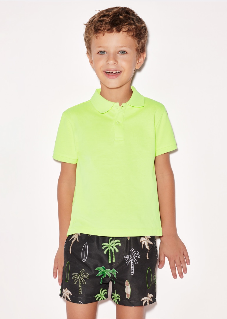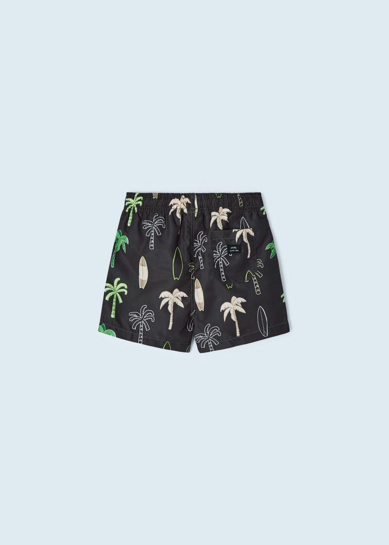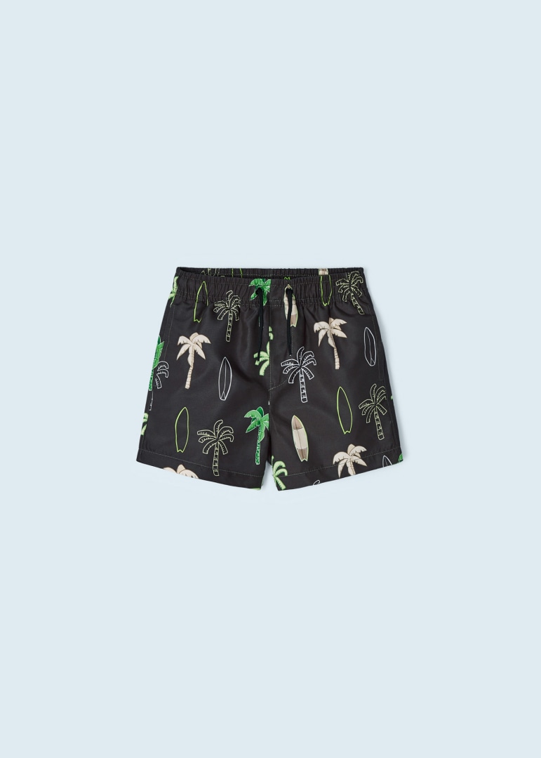 Prenda ECOFRIENDS 100% Poliester reciclado. Bañador bermuda para niño. Cintura con cordón interior ajustable. Bolsillo trasero funcional. Diseño estampado.