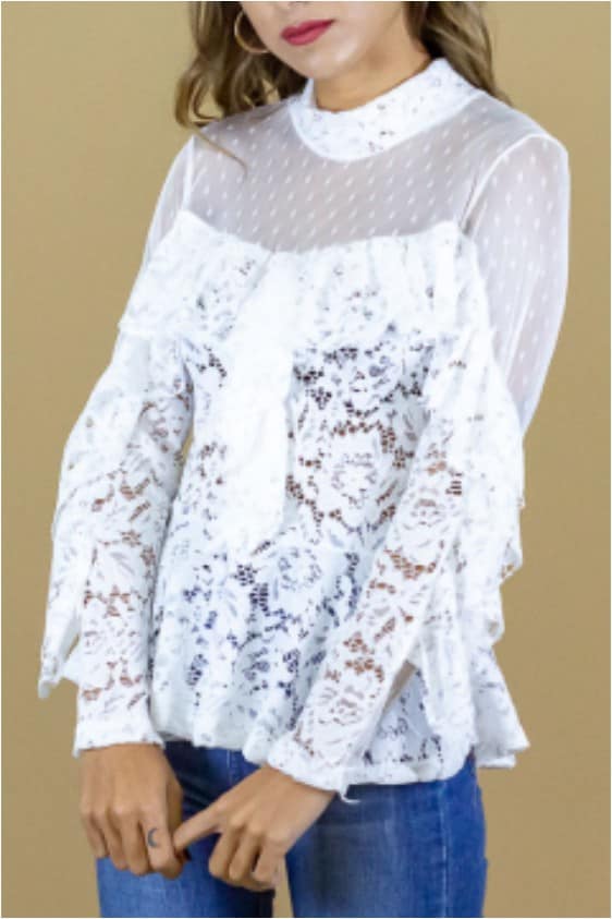 Esta fantástica blusa de encaje y plumeti te va a robar el ❤️