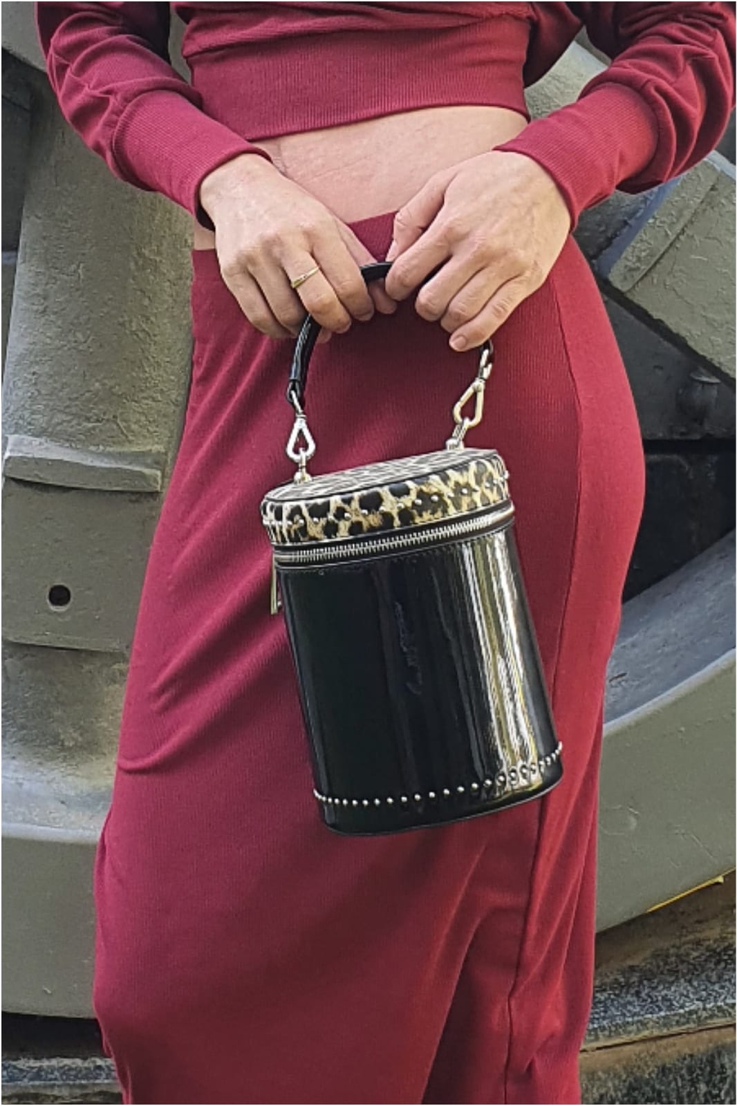 Precioso bolso cilíndrico de charol con un toque de animal print para primavera🌺 verano☀️ otoño🍁 y invierno ❄️