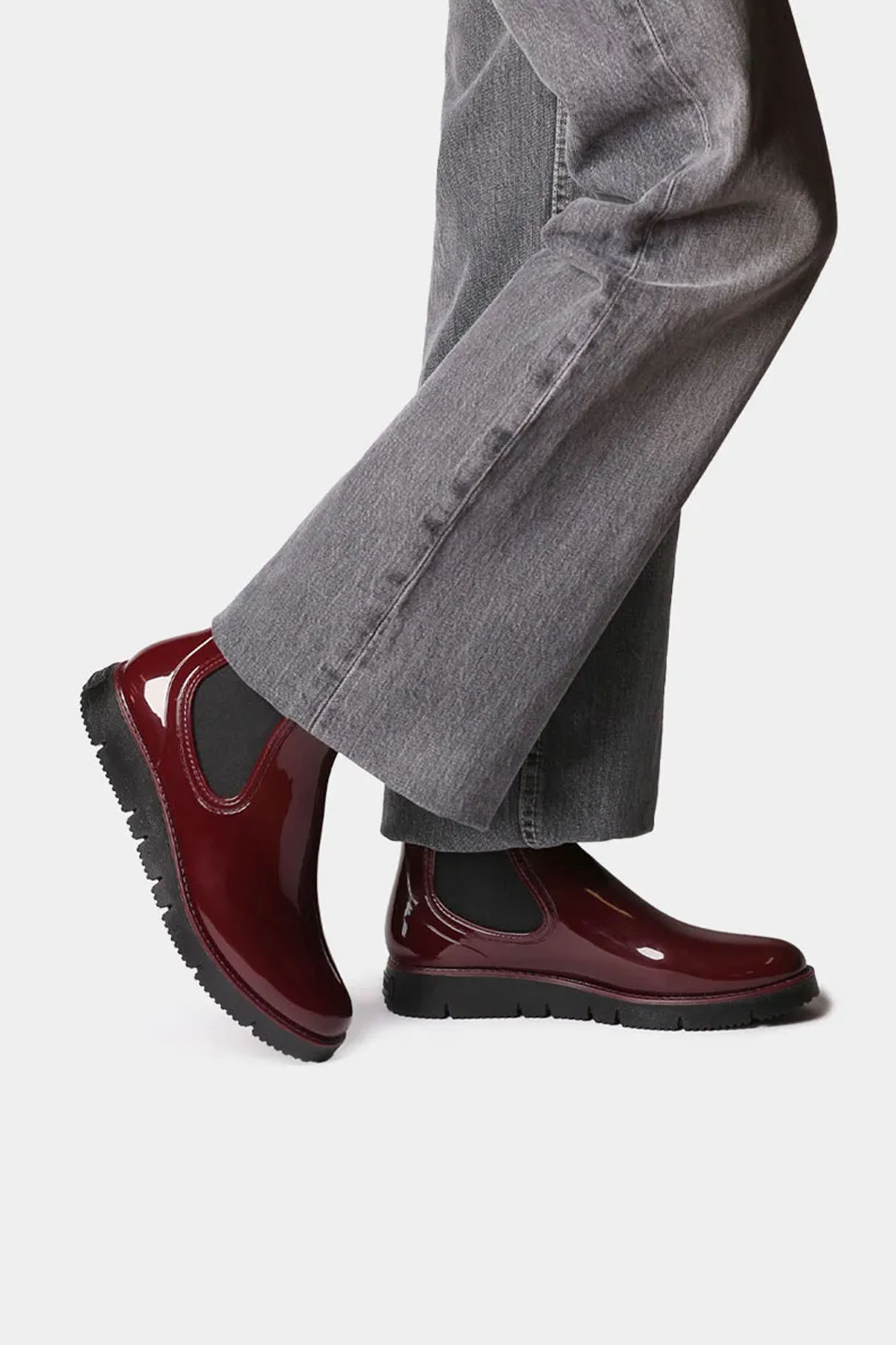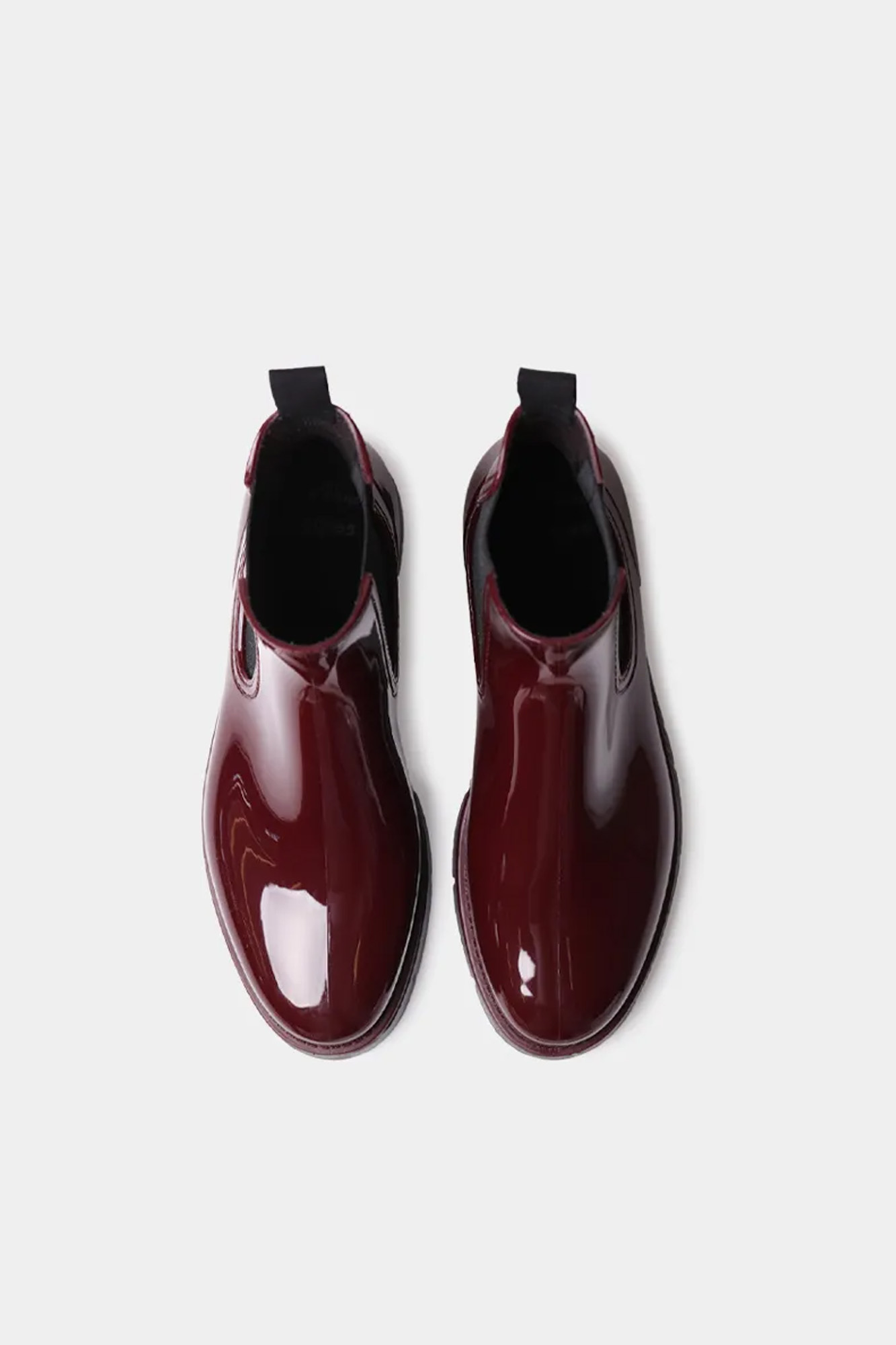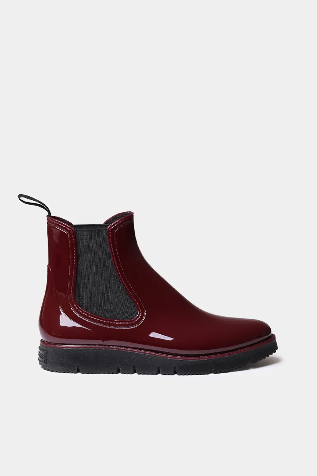 Botas de agua de color granate brillante con elástico en los laterales.