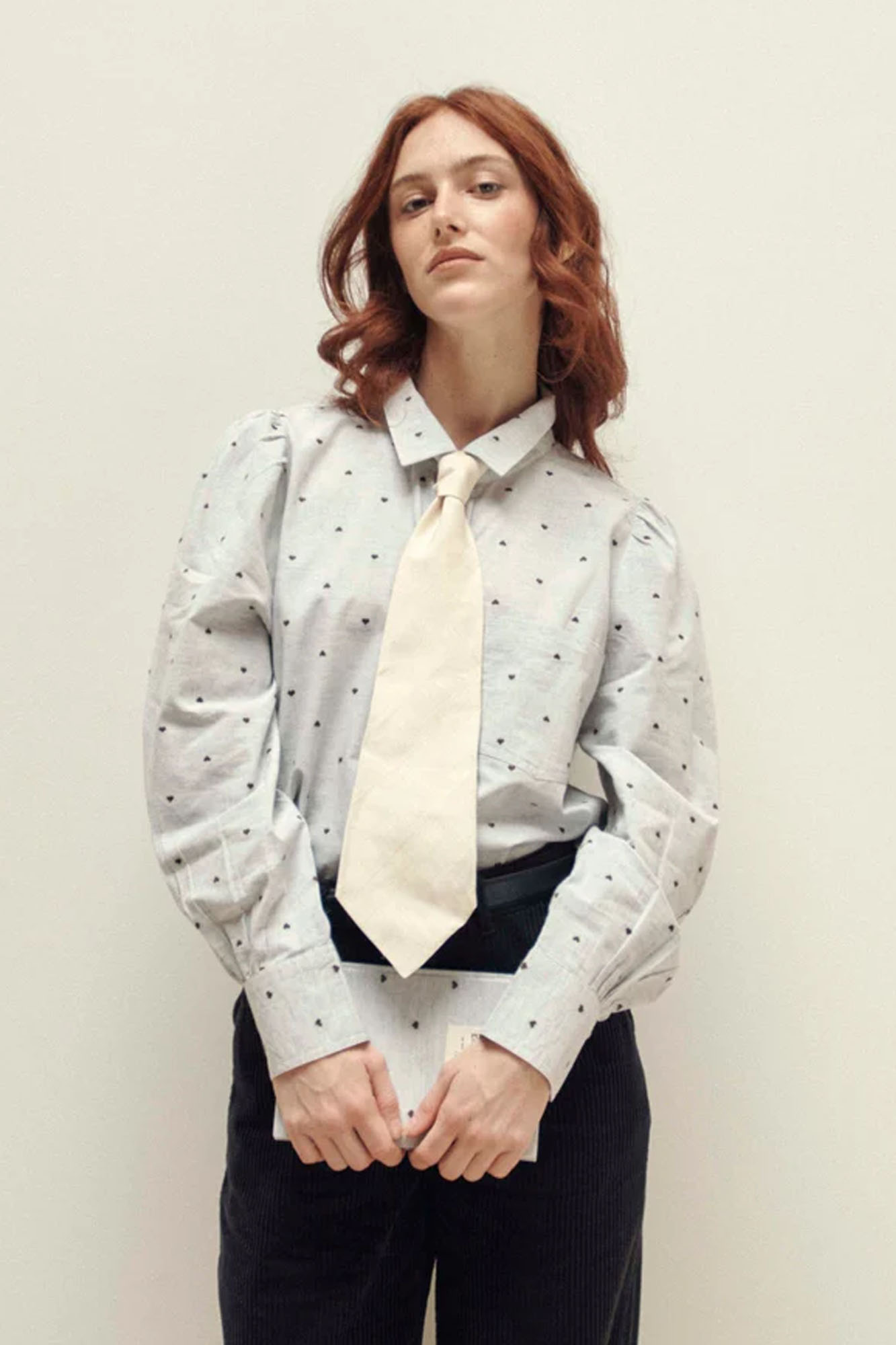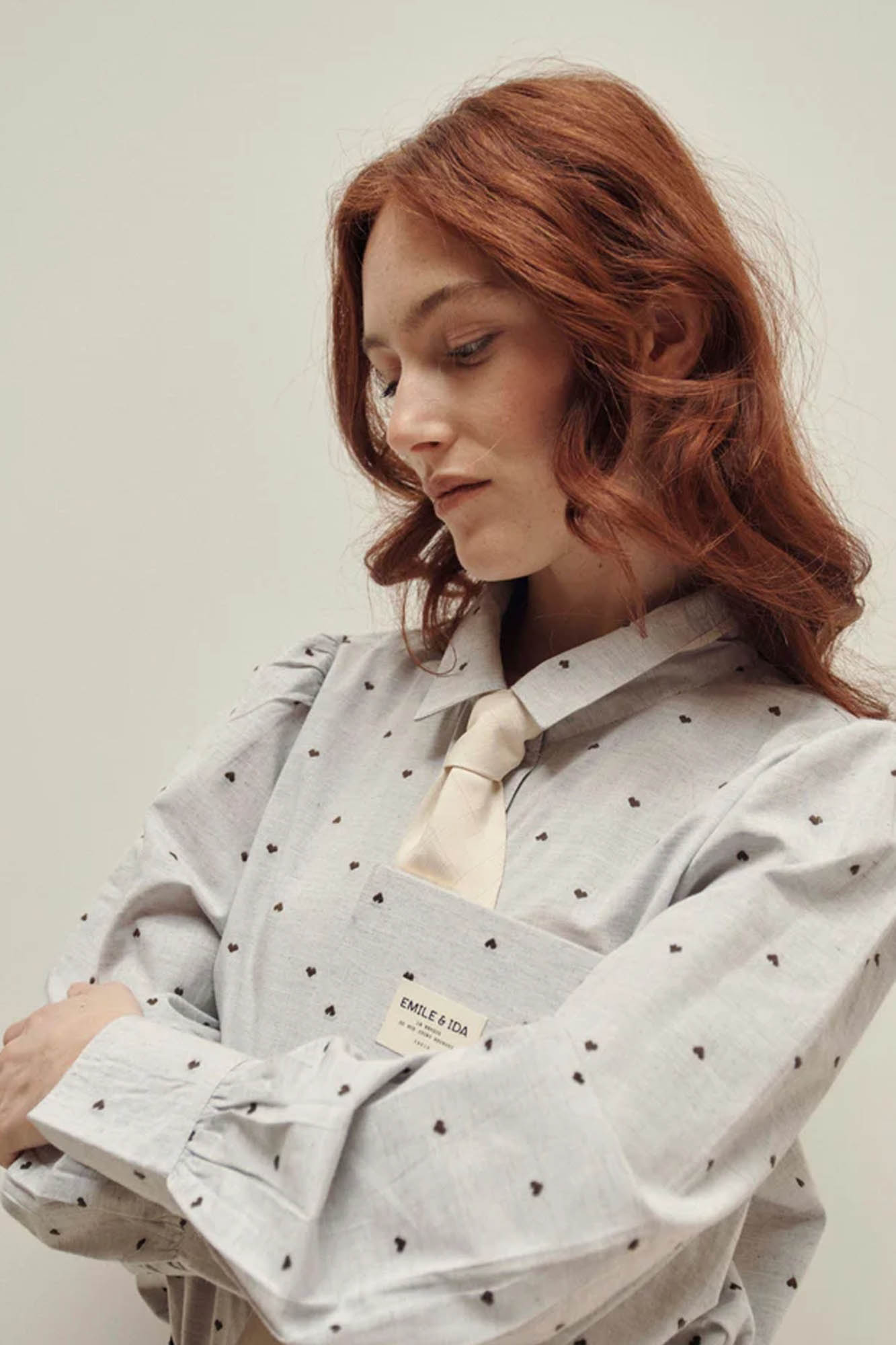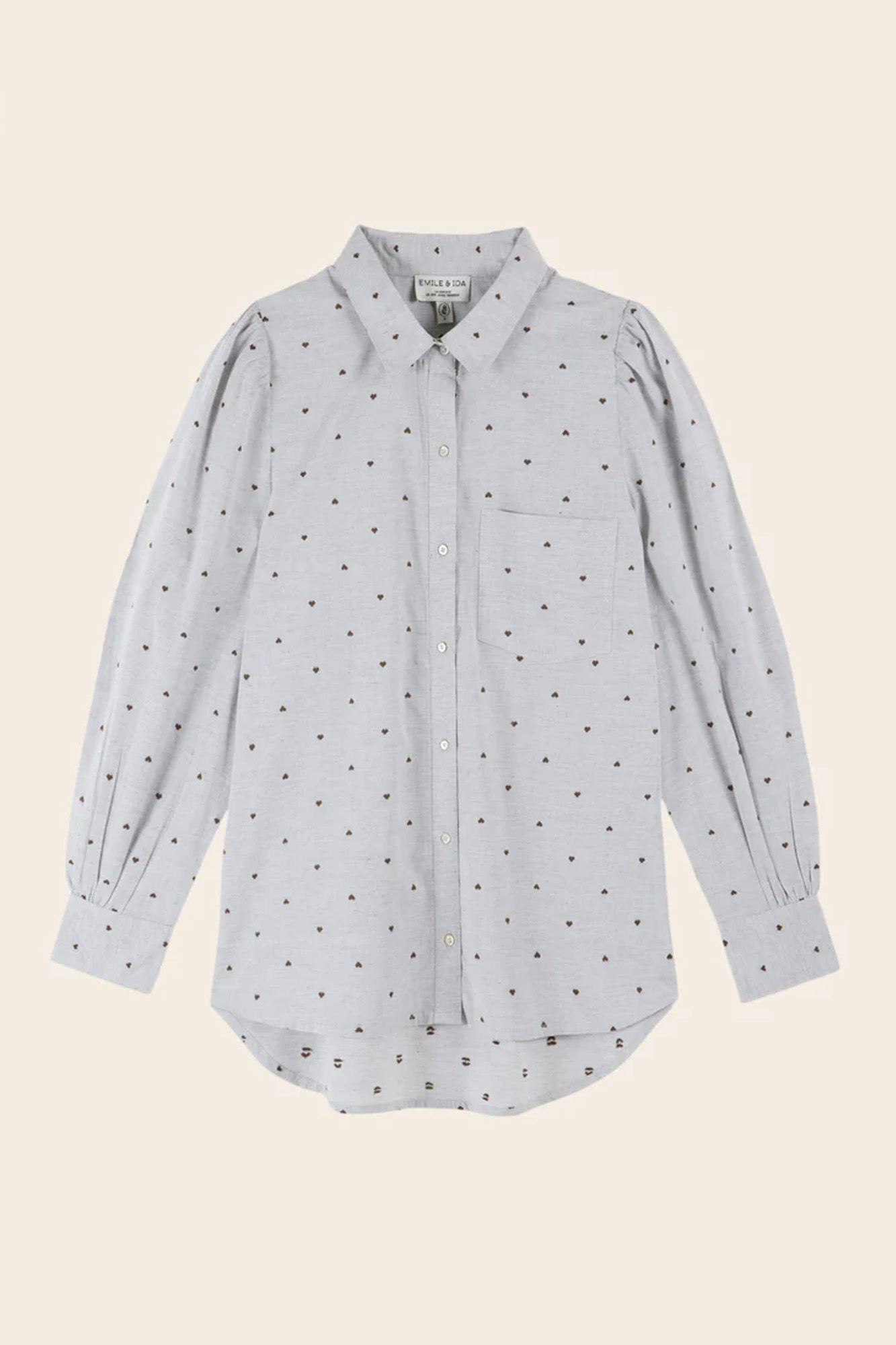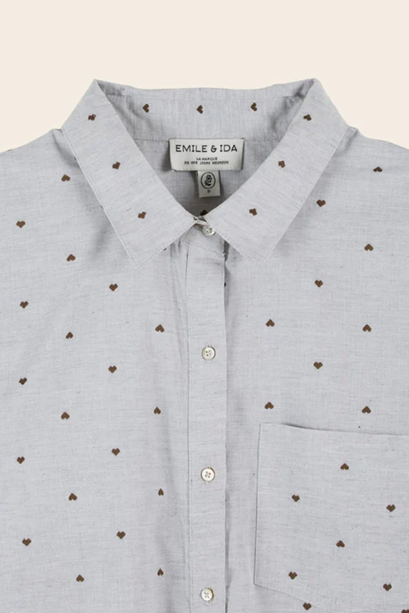 Camisa de algodón con pequeños corazones bordados en jacquard.