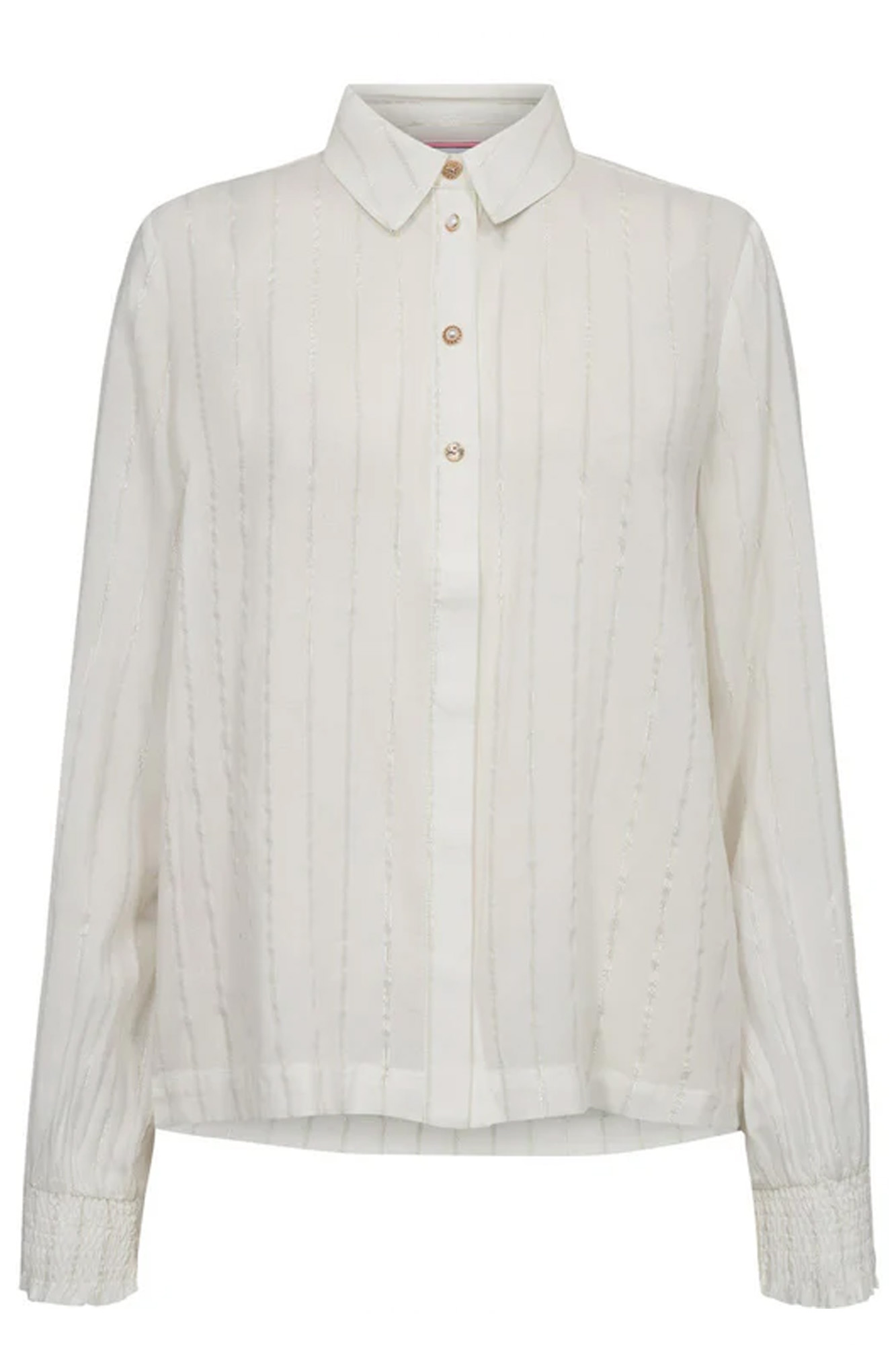 Camisa fluida en color blanco y raya diplomática.