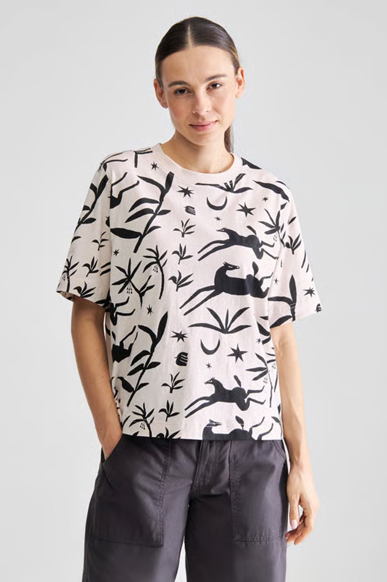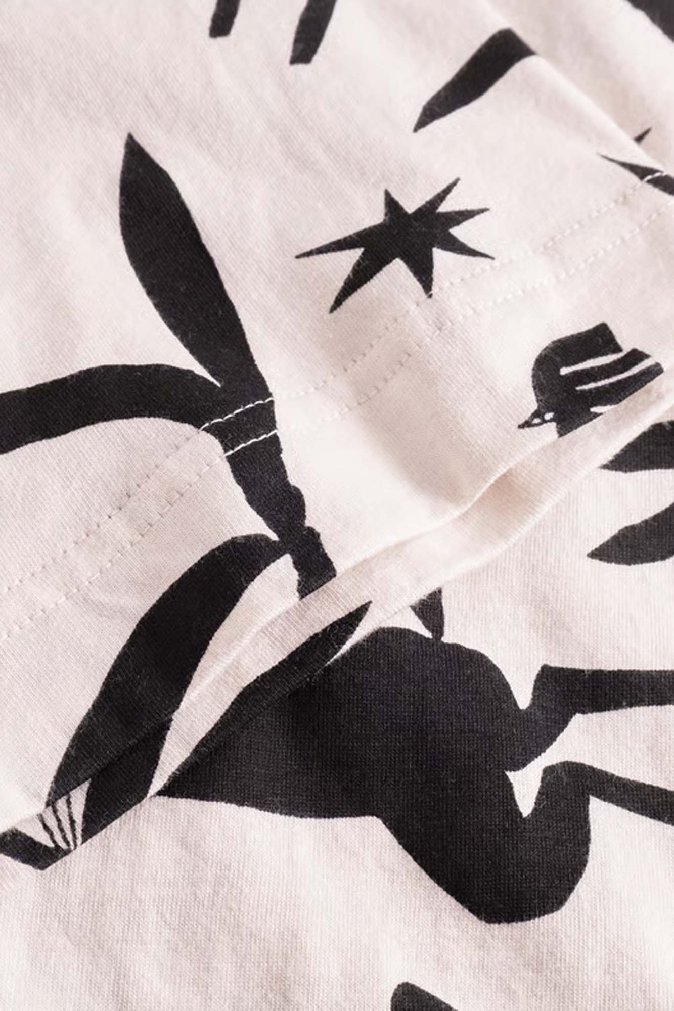 Camiseta oversize con base blanca y una bonita estampación en negro de la artista Enikő Katalin Eged.