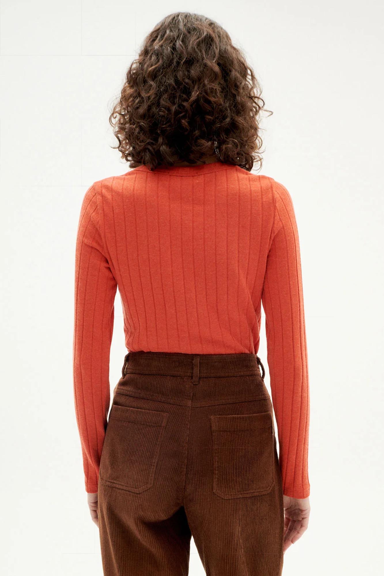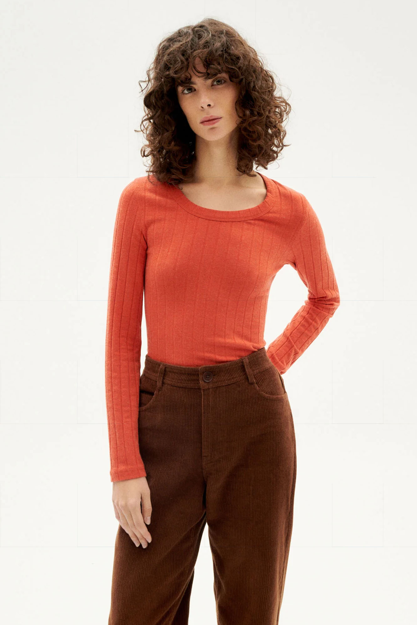 Se ajusta al cuerpo, queda muy bien para llevar combinada con pantalones o faldas de cintura alta.