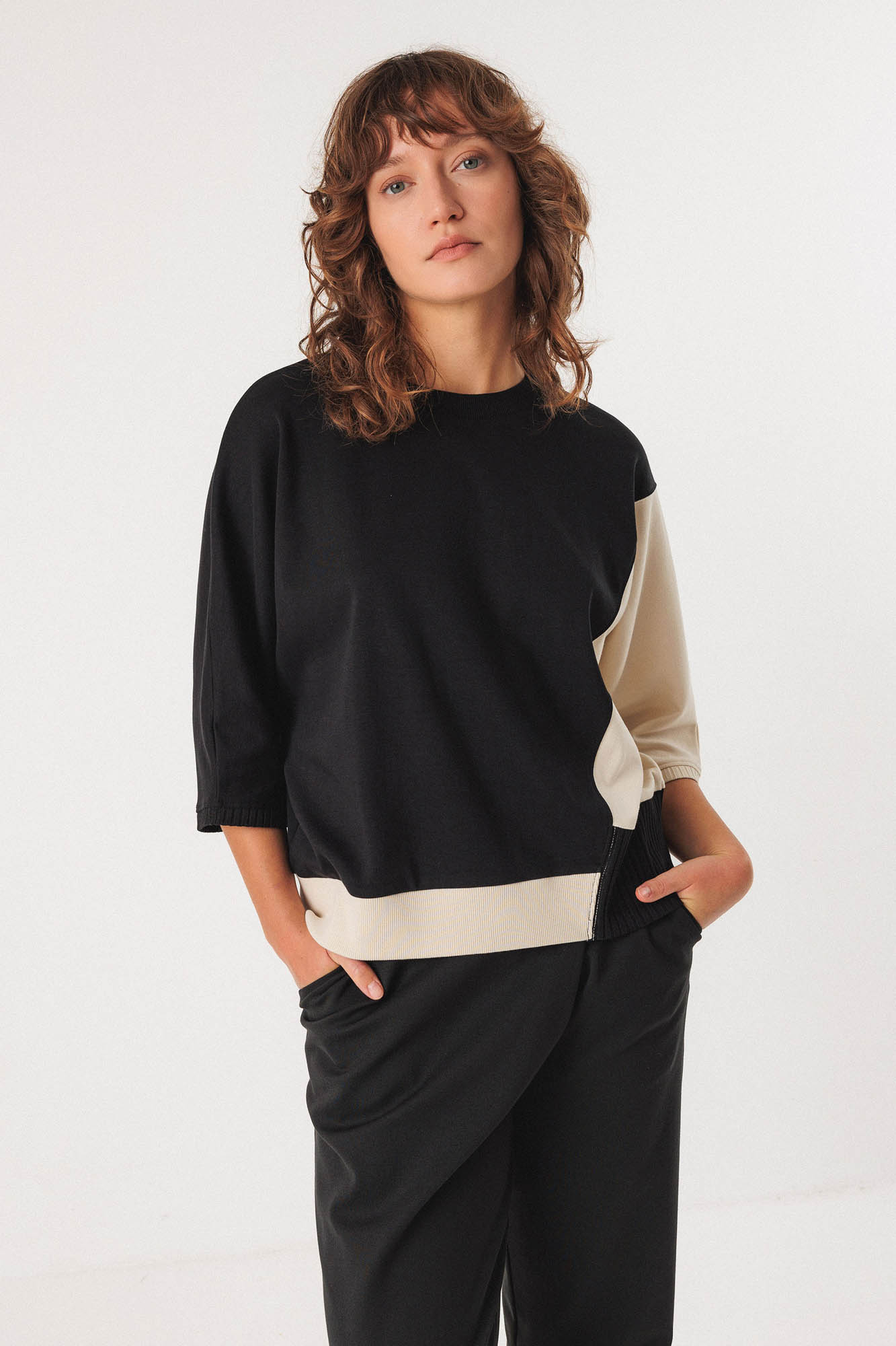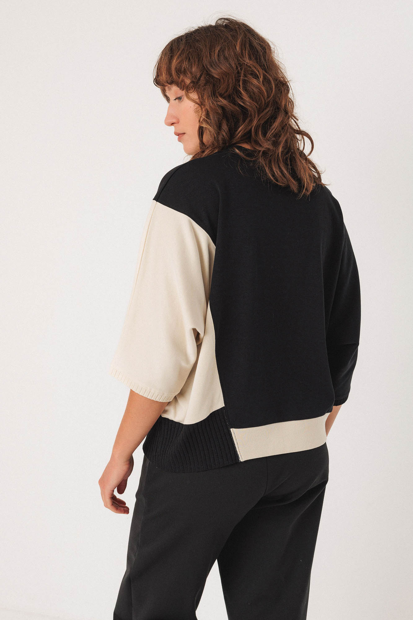 Camiseta asimétrica en color negro y crudo.