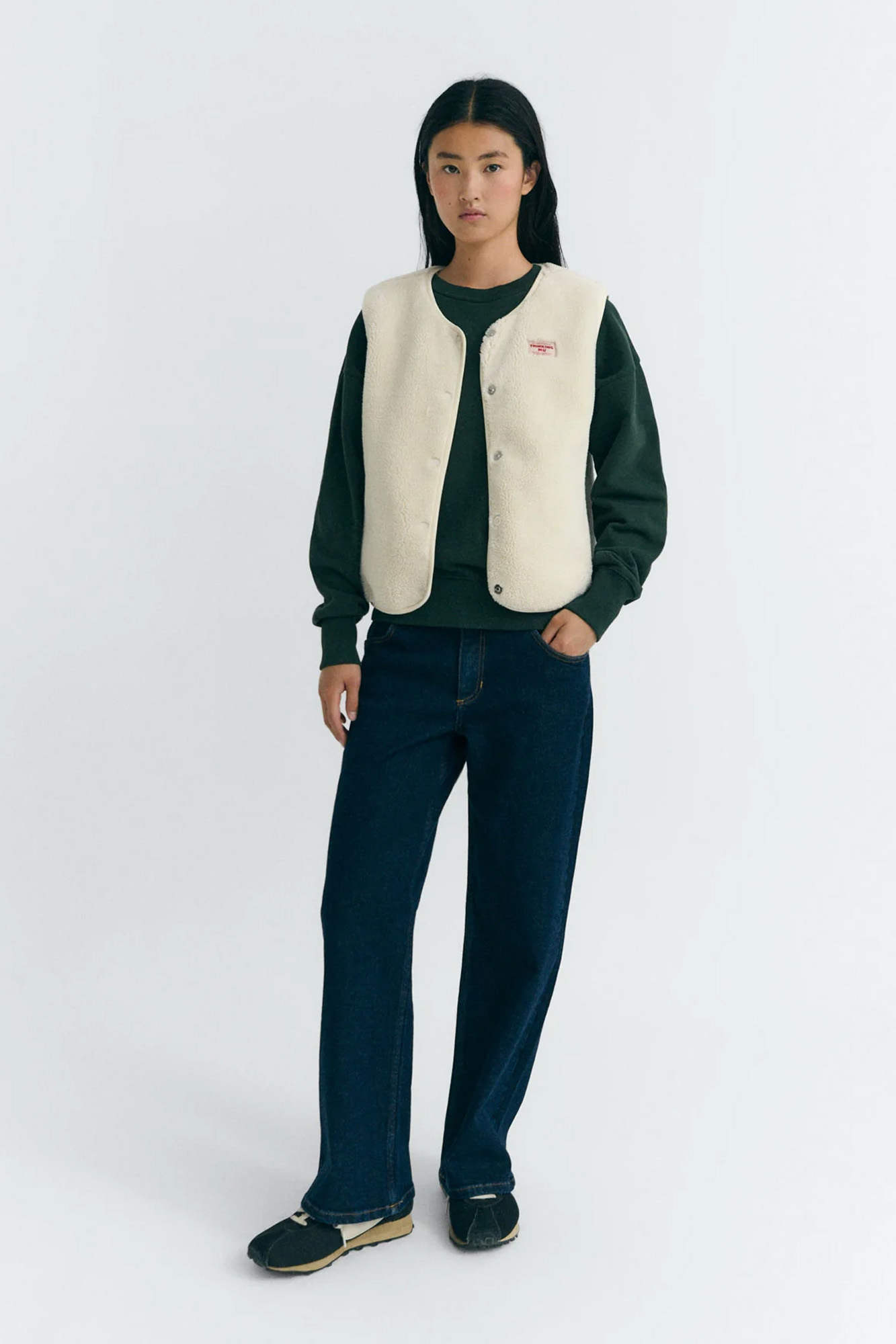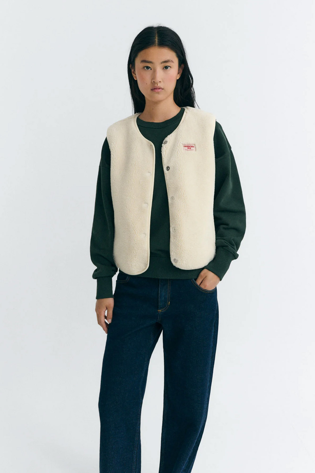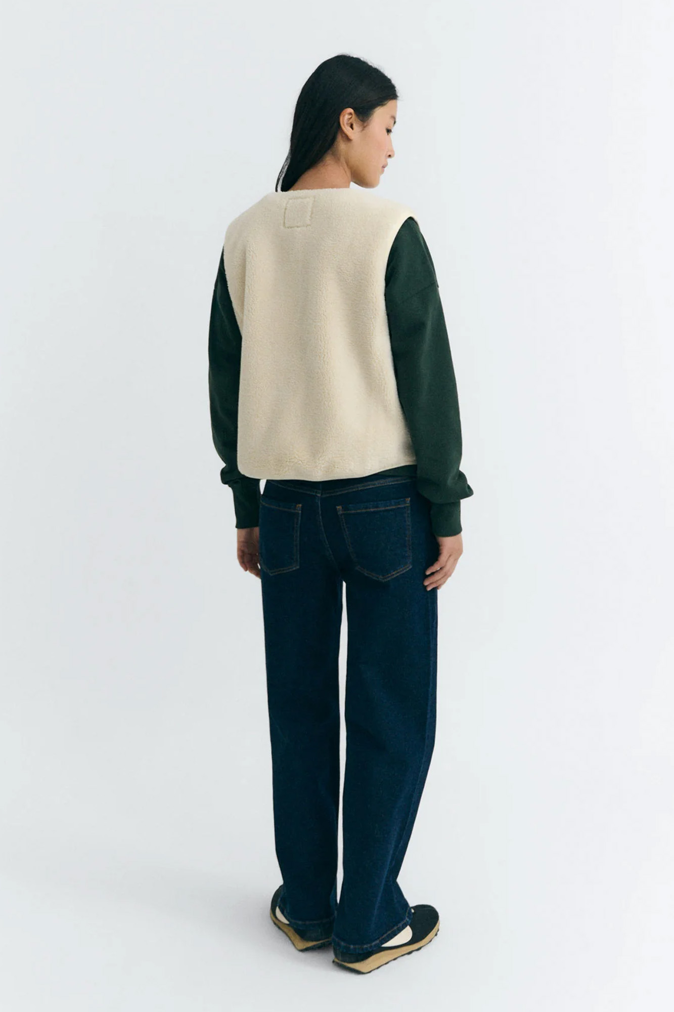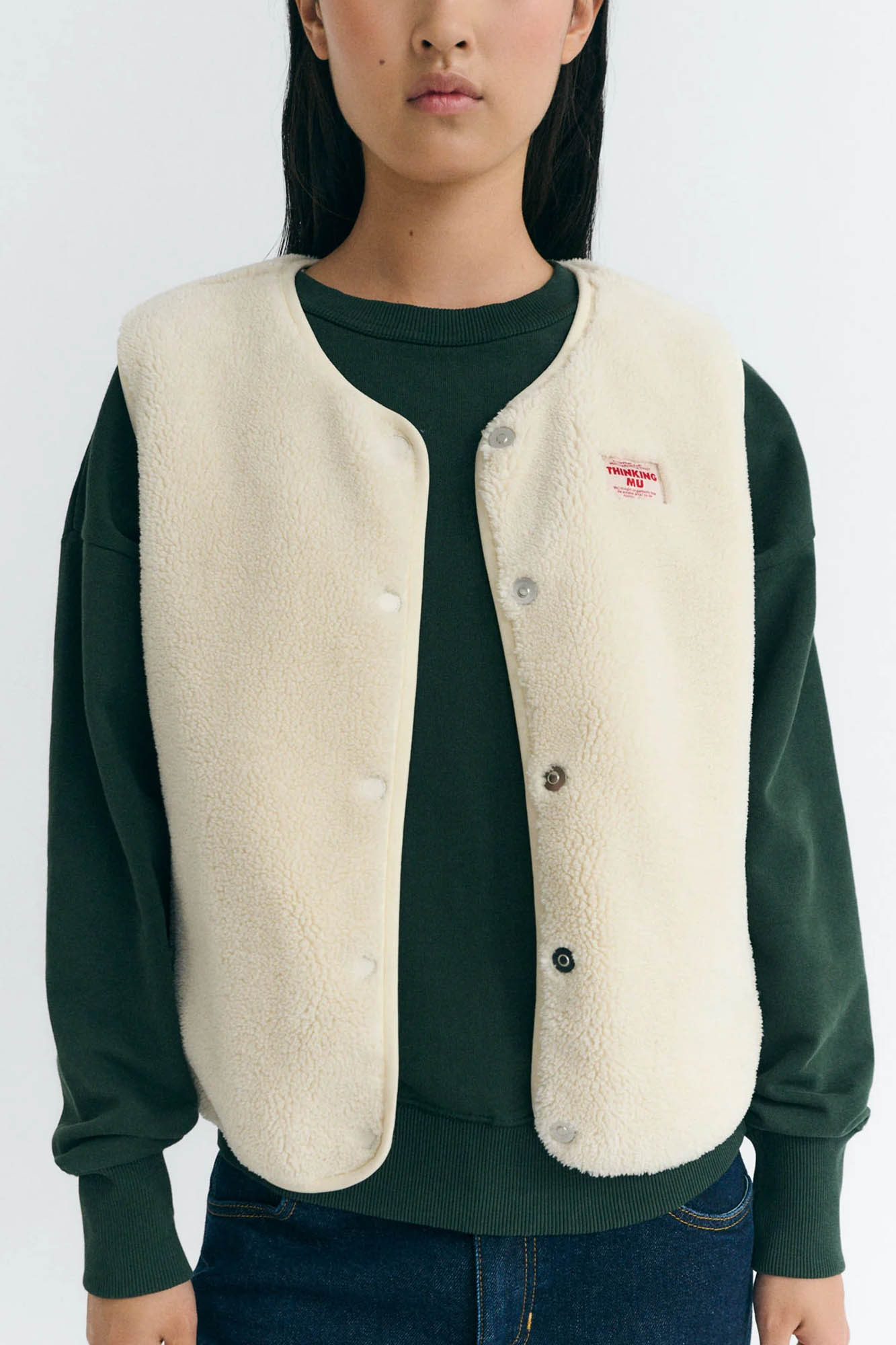 Chaleco de borreguito confeccionado en poliéster reciclado.
