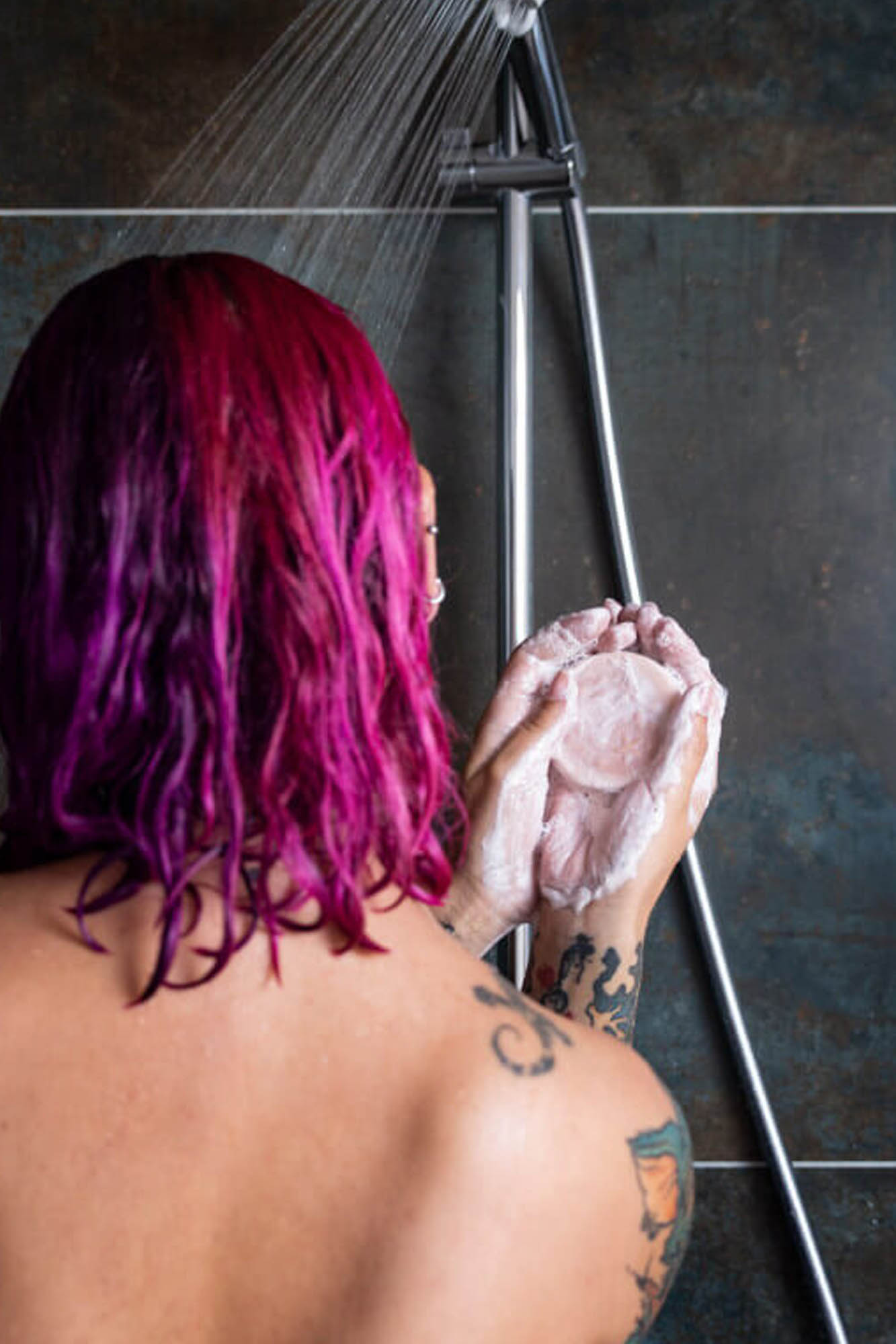 – El extracto de raíz de Gromwell morado (extracto de raíz de Lithospermum erythrorhizon, aceite de semilla de Simmondsia chinensis, aceite de semilla de Helianthus annuus) es un extracto oleoso (aceites de jojoba y girasol) con un pigmento que le da a nuestro champú sólido su hermoso color rosa.