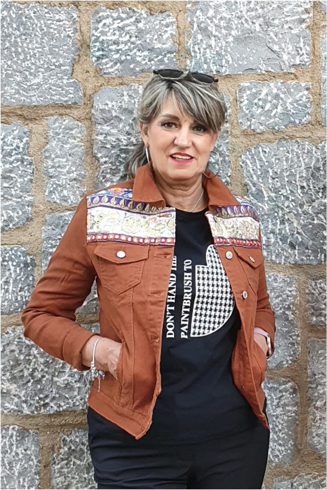 Esta chaqueta es muy muy bonita y el estampado de los hombros es maravilloso … le da un toque ideal 😉