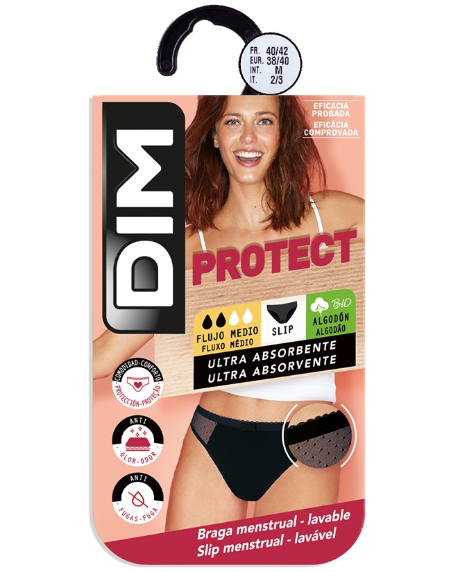 ¿Una protección eficaz que se lleva como una braga y te permite estar cómoda? ¡Ahora es posible con las bragas lavables Dim Protect! Se acabaron las posibles alergias, la contaminación y los tabúes, con tus nuevas bragas menstruales Dim Protect, ¡eres libre! Gracias a su elaboración en materiales específicos hipoalergénicos, tus bragas de algodón menstruales te permiten realizar cualquier actividad sin miedo, ¡incluso deporte!