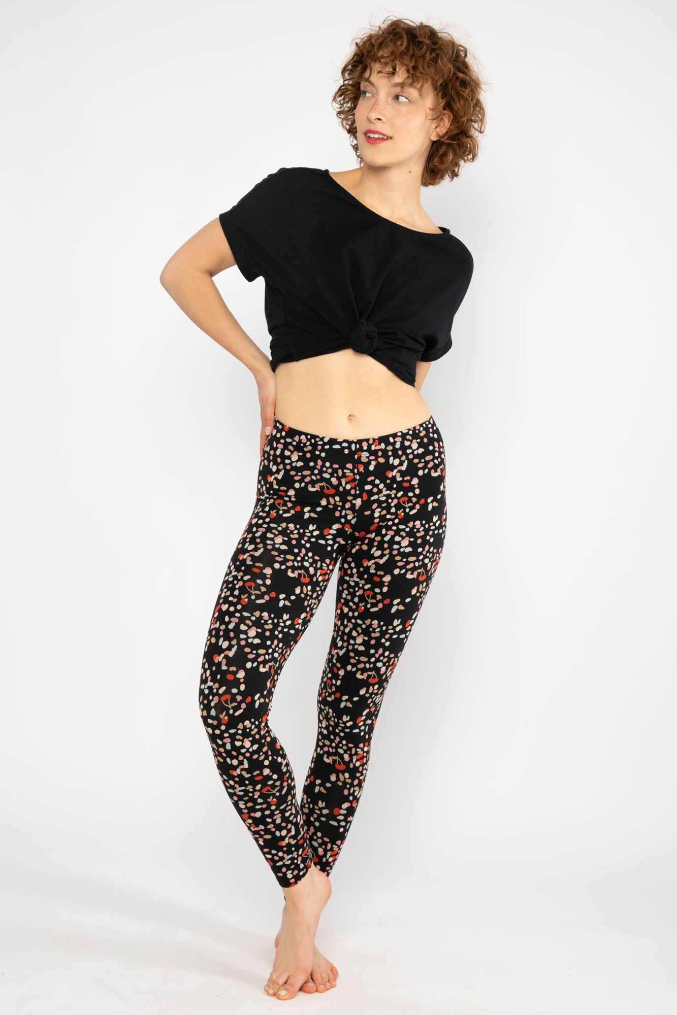 Legging de algodón orgánico en color negro con estampado de motitas de colores