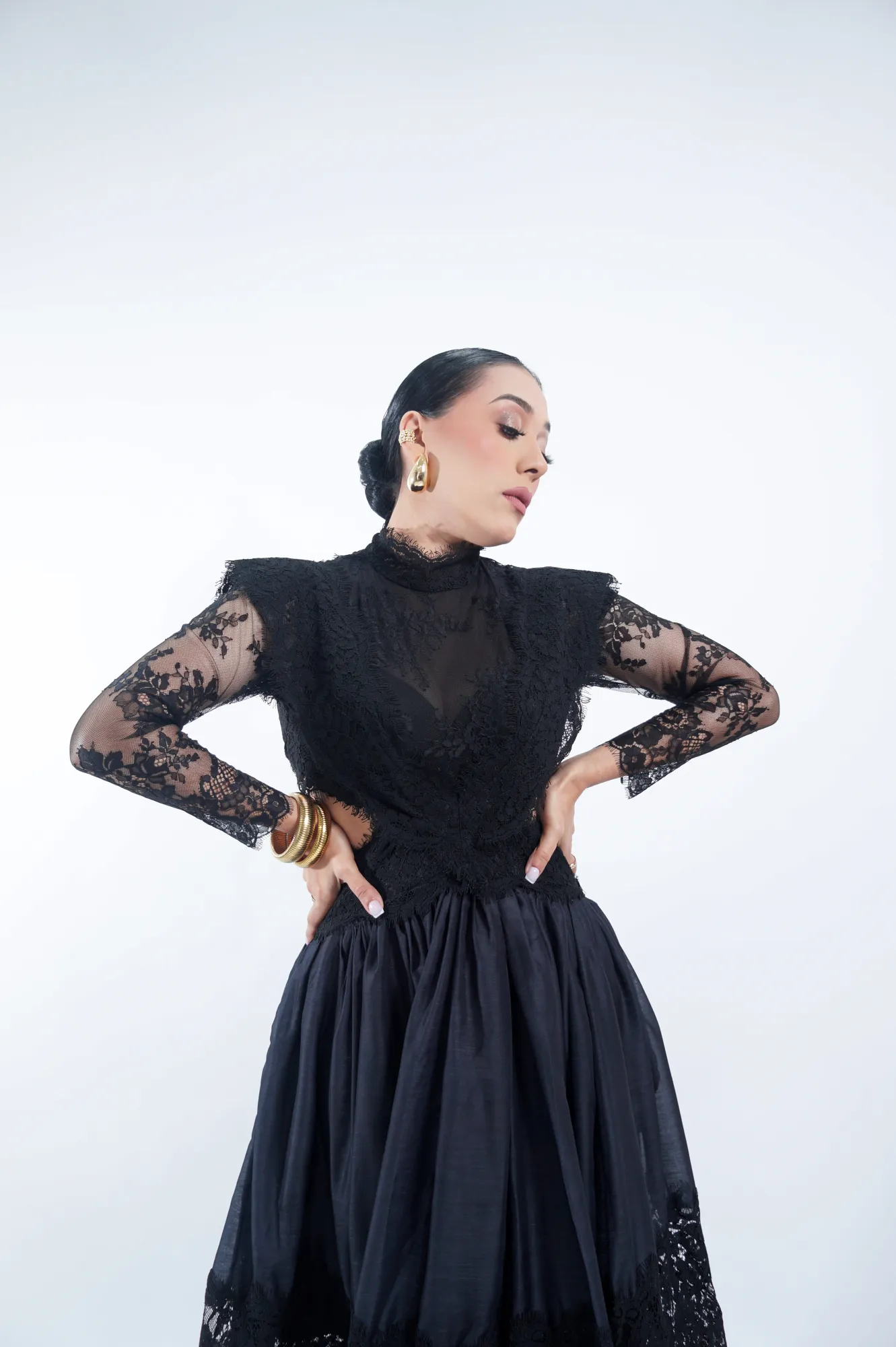 La modelo en la fotografía tiene las siguientes medidas:
