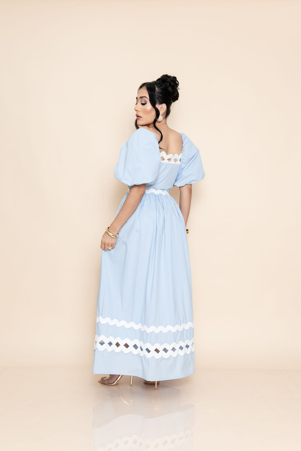 Refiná tu estilo con este encantador vestido celeste con mangas abullonadas y recortes blancos de Jireh Fashion. Esta prenda es perfecta para quienes desean un look fresco, romántico y con mucho carácter. Ya sea para una celebración especial, un paseo de fin de semana o un almuerzo elegante, este vestido se adapta con facilidad a cualquier ocasión.