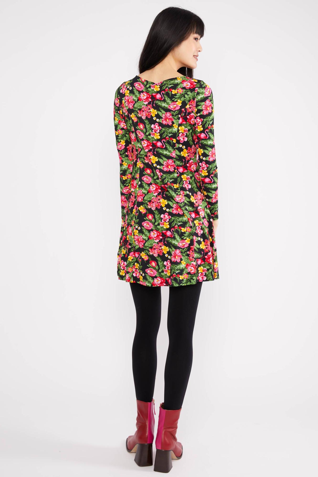 Precioso vestido de color negro con estampado floral.