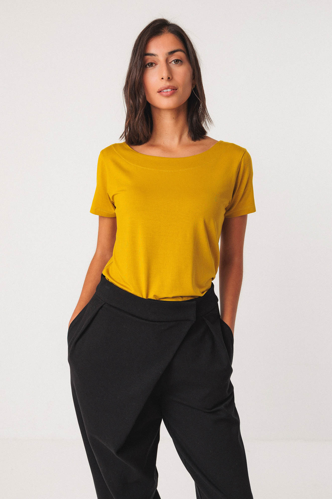 Bolsillos en las costuras laterales.