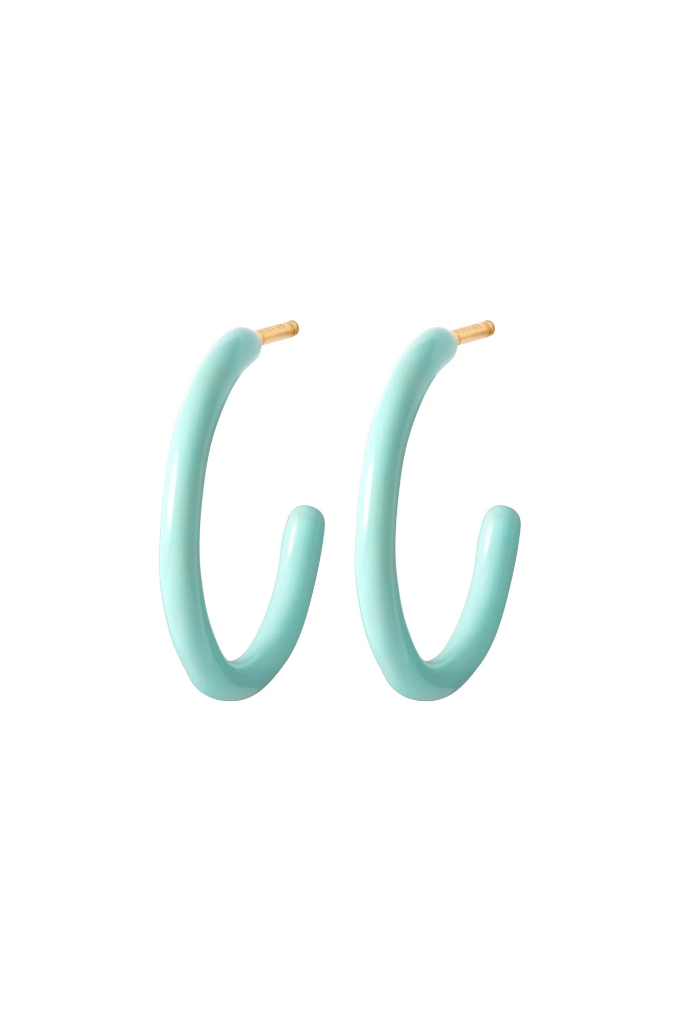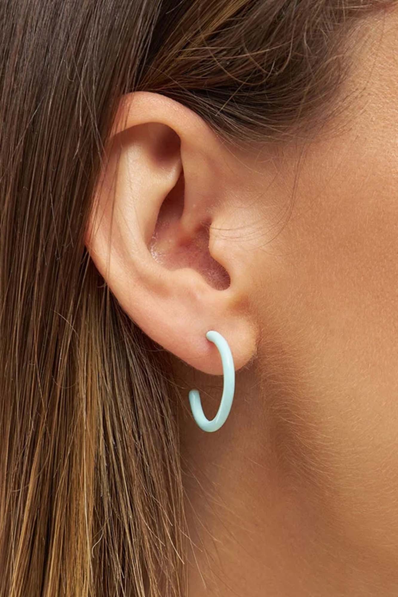 Conjunto de dos aros medianos esmaltados en color turquesa.