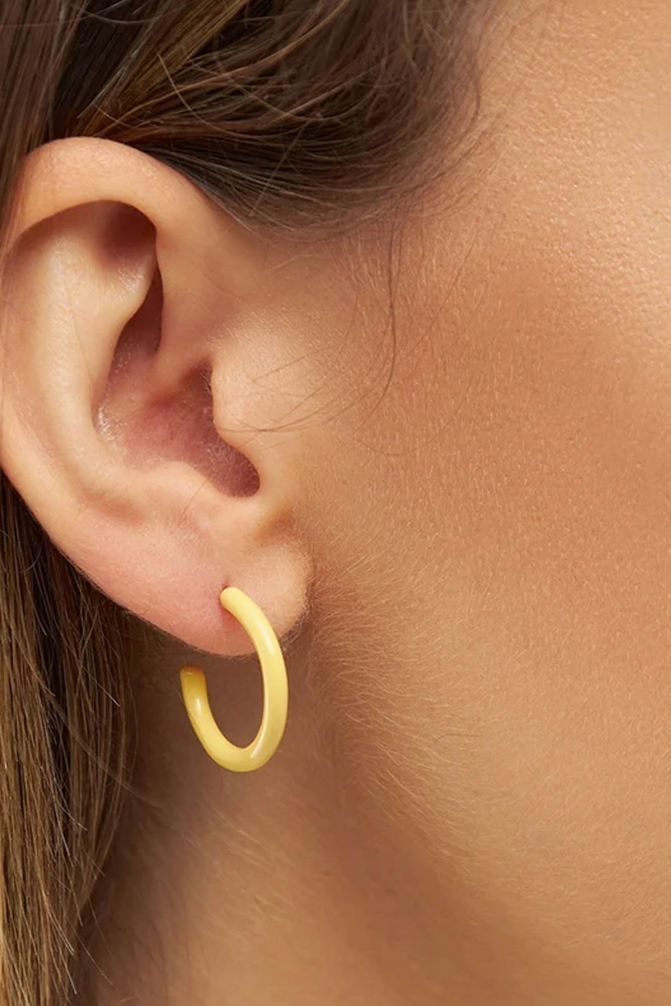 Conjunto de dos aros medianos esmaltados en amarillo.