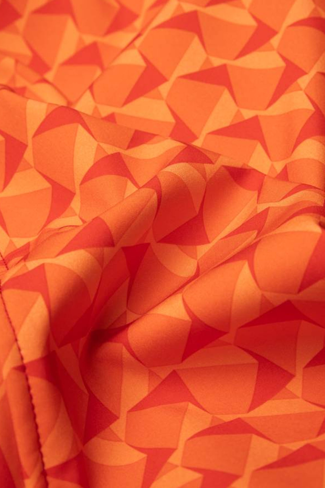 Con estampado abstracto en tonos naranjas.