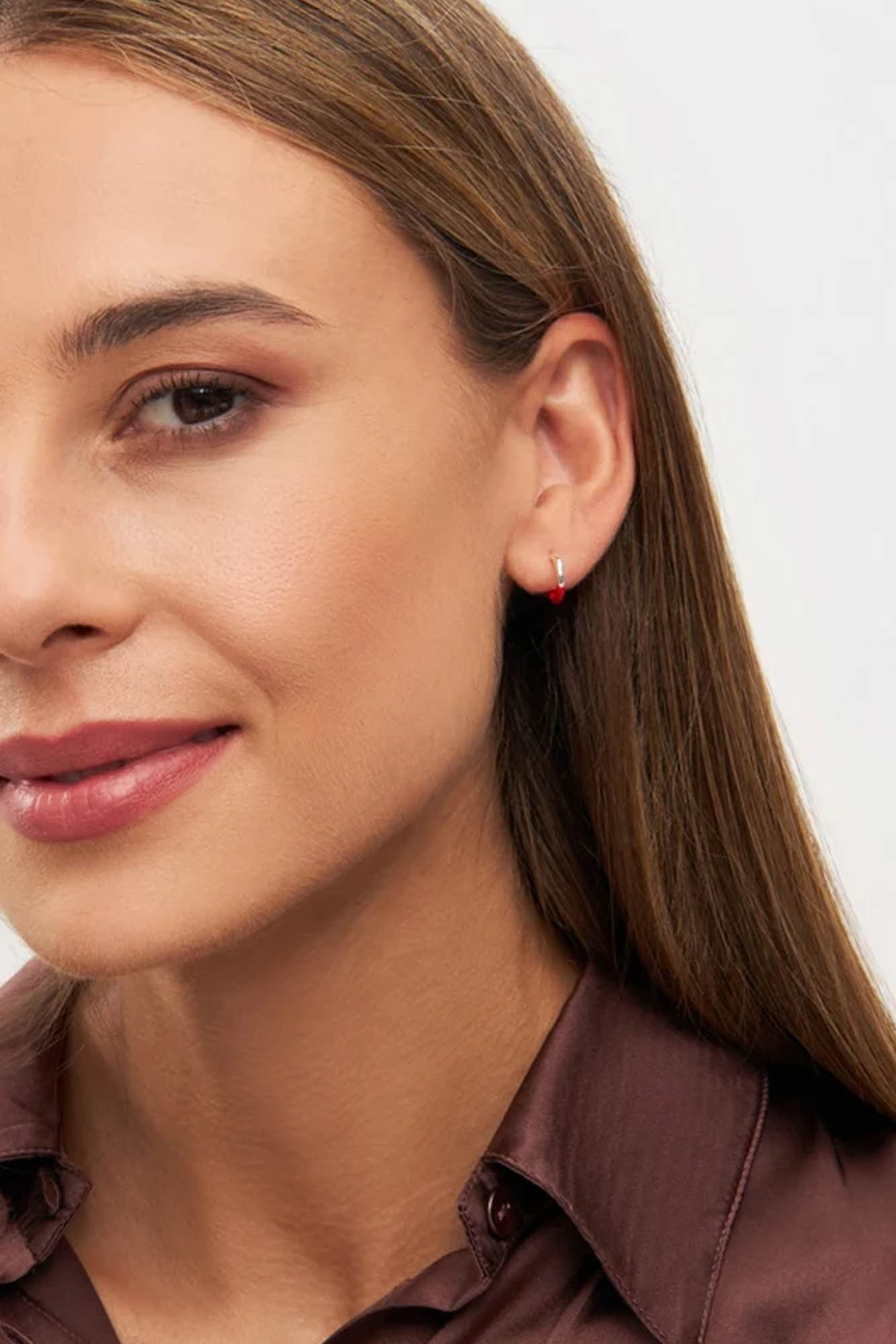 Pendiente aro bañado en plata 1 pieza HALF RED