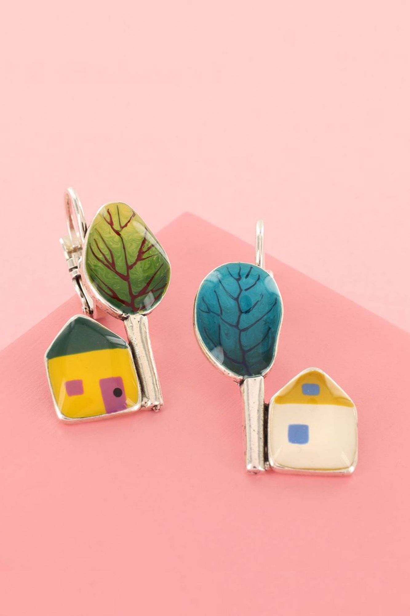 Pendientes en forma de casas con cierre catalán.