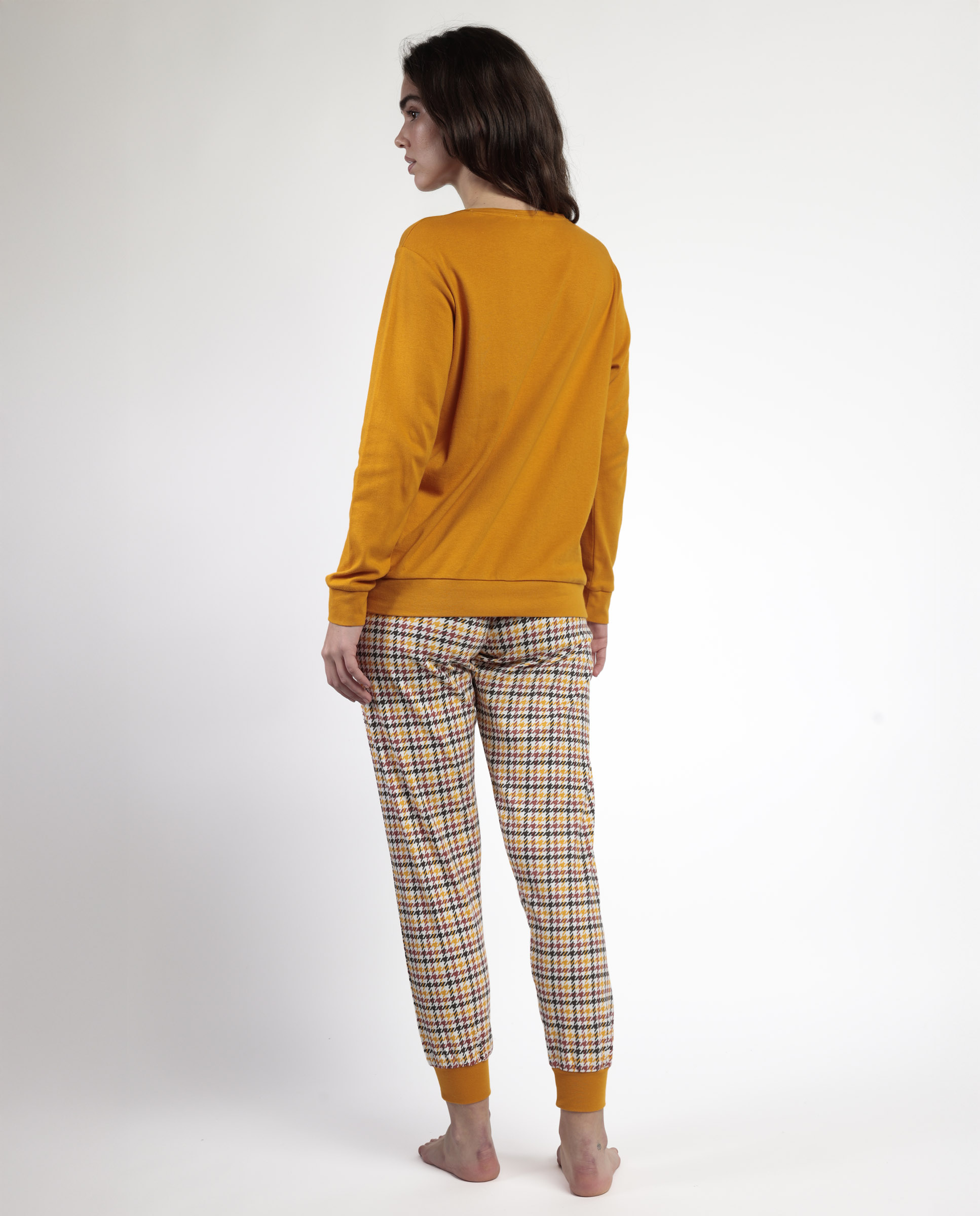 Pijama de Mujer ADMAS “My Best Friend Lou Lou” 🐶 | Conjunto de Algodón Suave en Color Mostaza con Estampado de Cuadros | Comodidad, Estilo y Dulzura para tus Noches 🌙💛