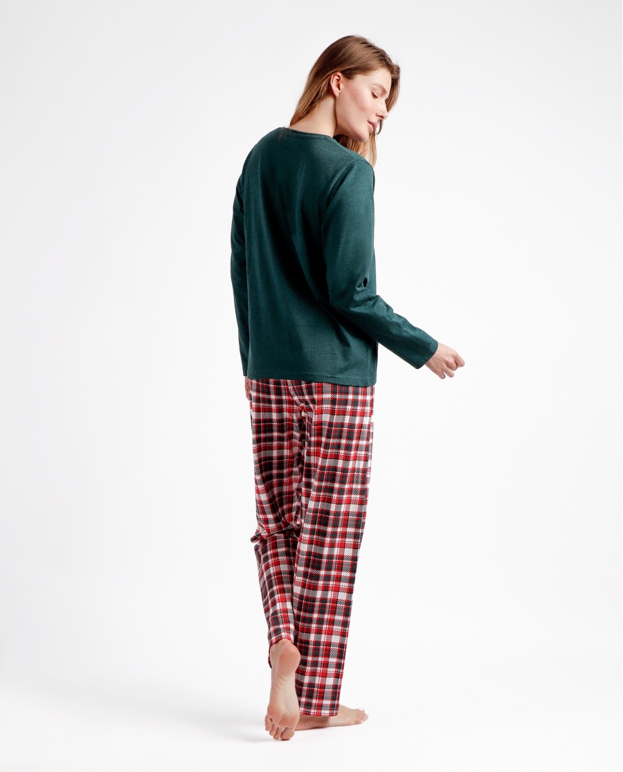 * Pijama de punto de algodón, de manga larga, cuello redondo y pantalón largo.