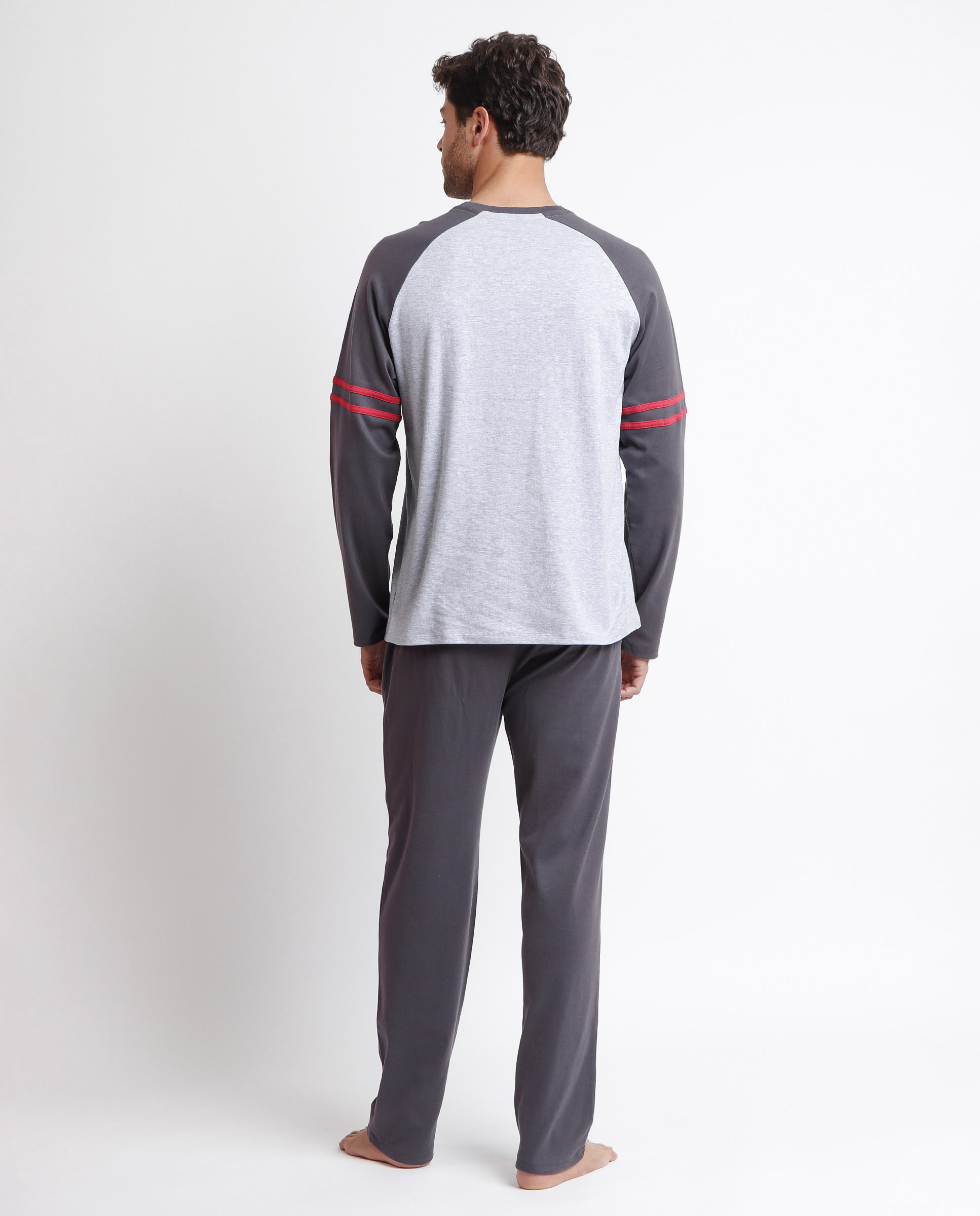 * Pijama de punto de algodón, de manga larga, cuello redondo y pantalón largo.