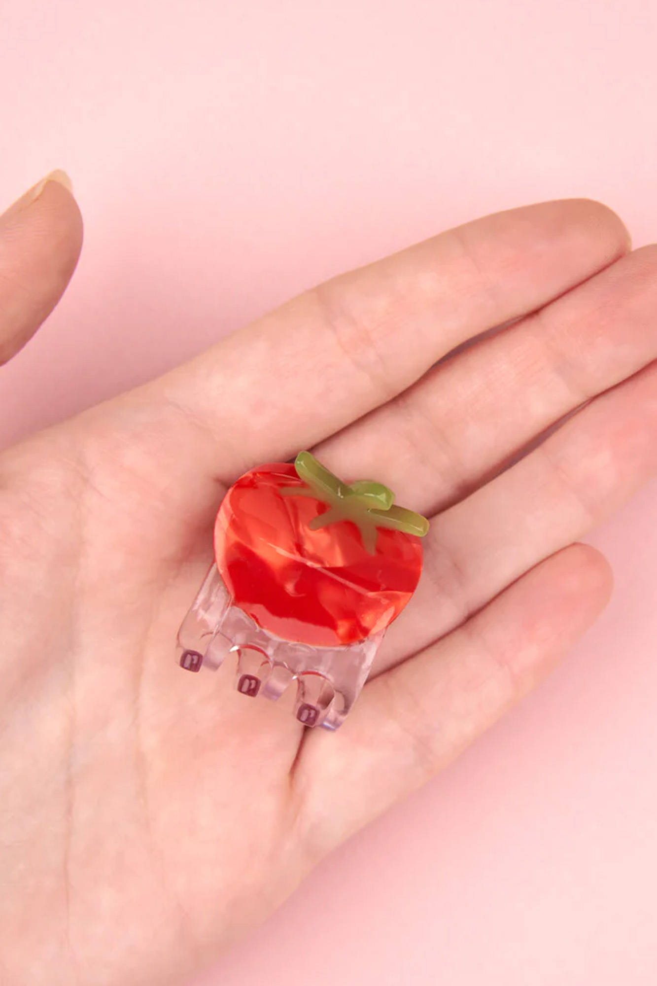 Esta pinza para el pelo recrea un lindo tomate cherry.