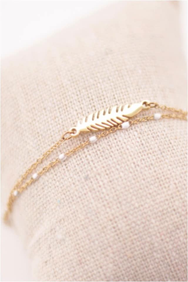 Pulsera mujer doble acero dorado hoja y esmalte blanco