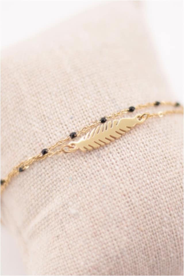 Espectacular pulsera doble fabricada en acero dorado con hoja y esmaltado negro 💞