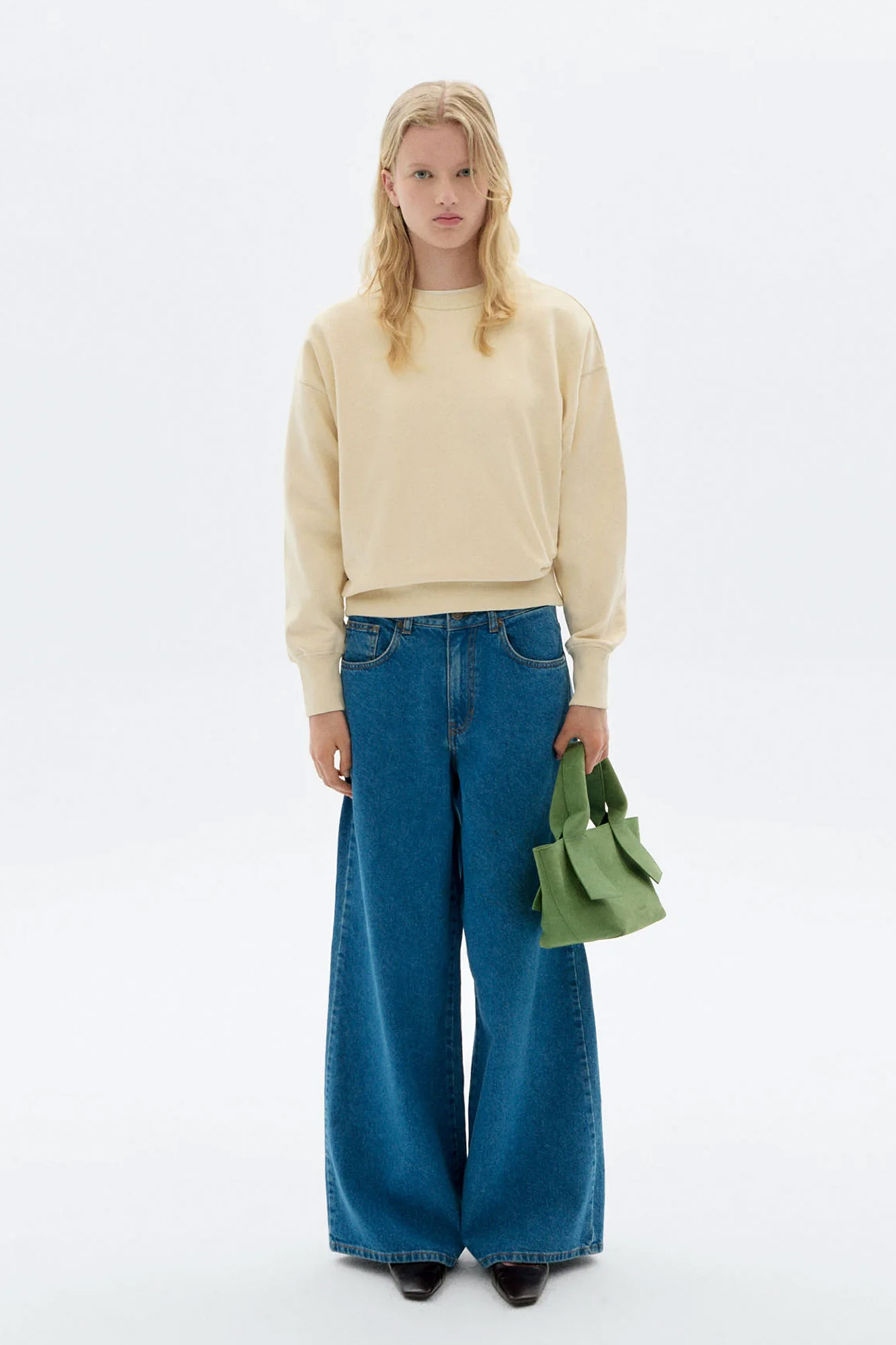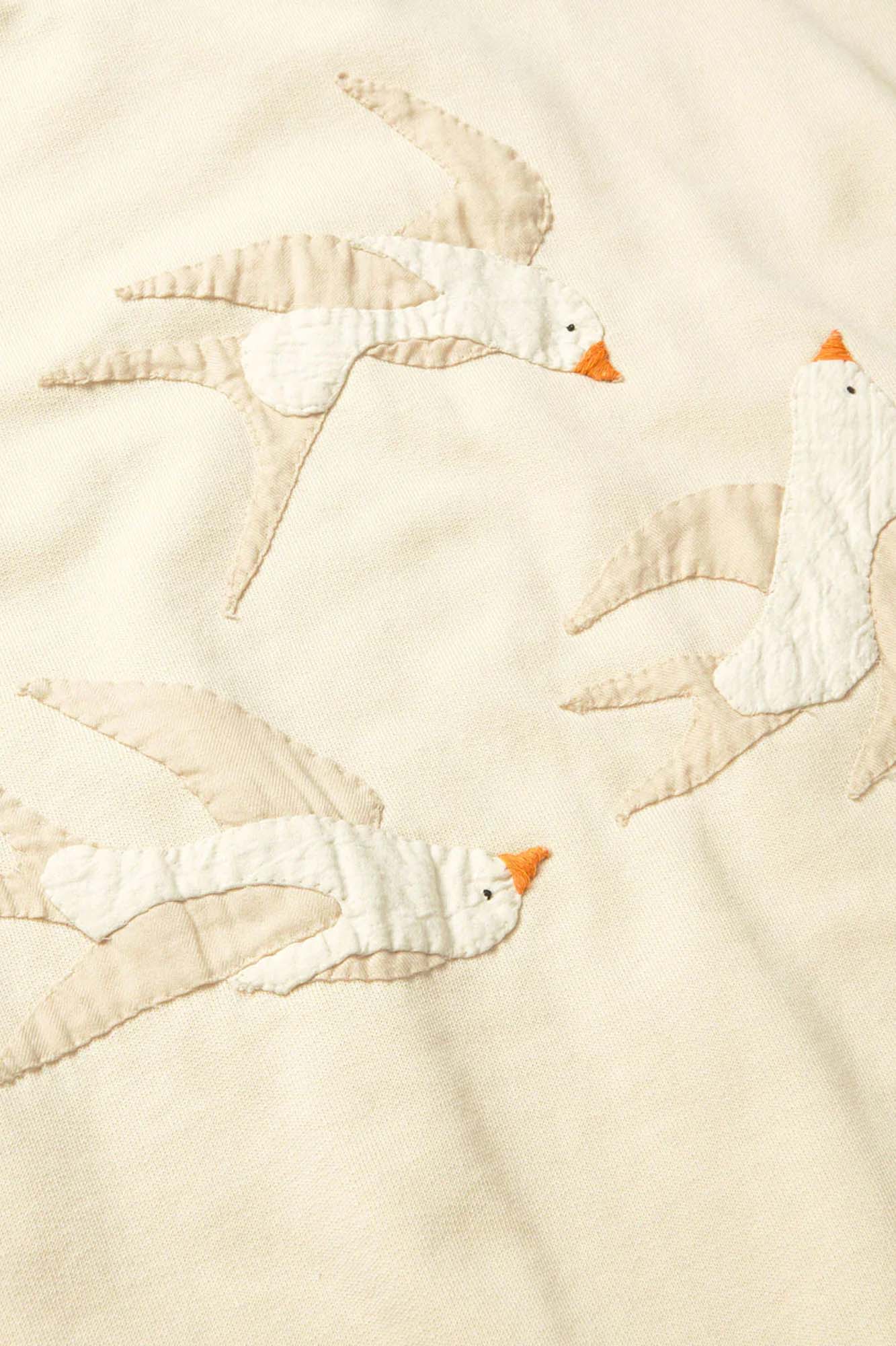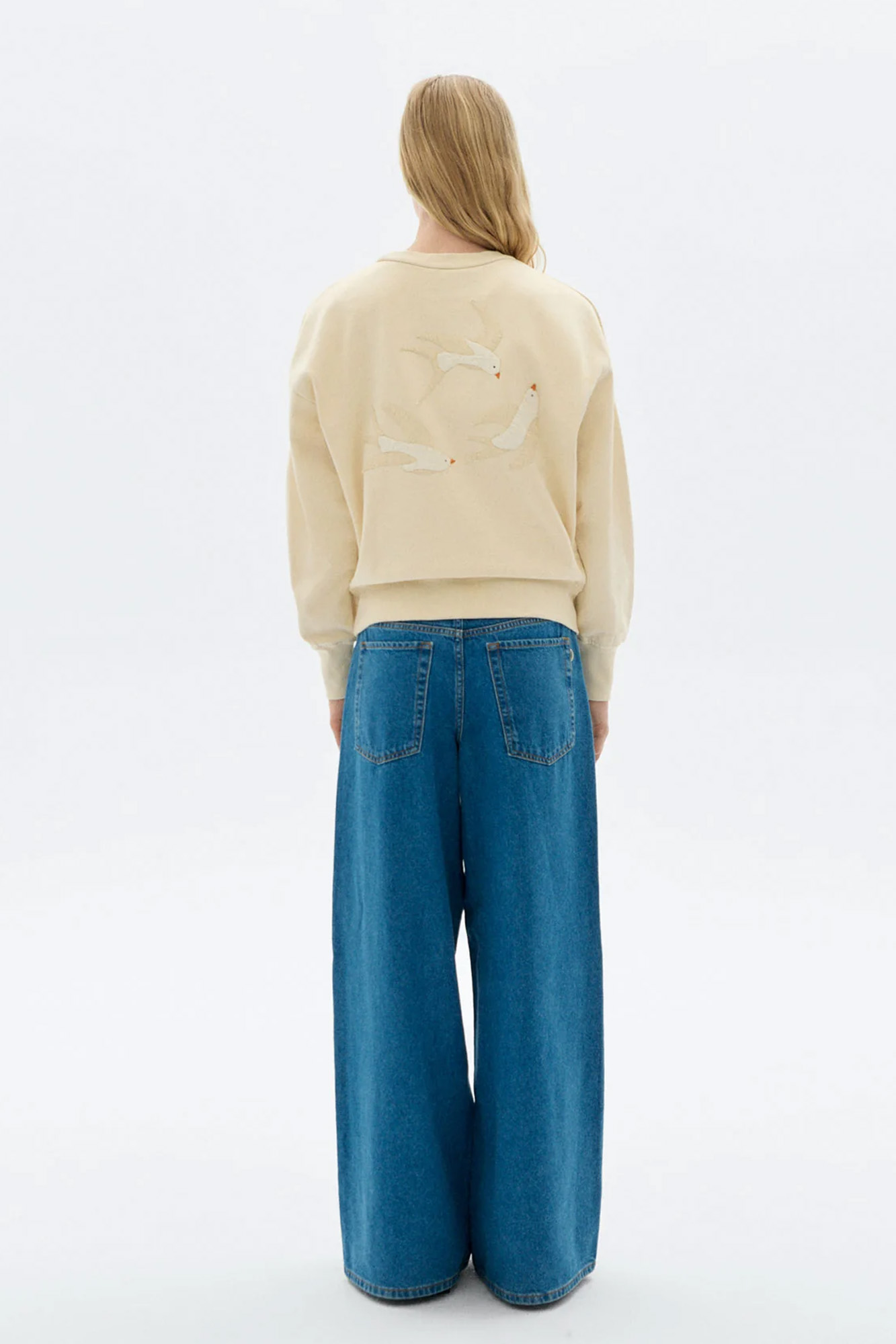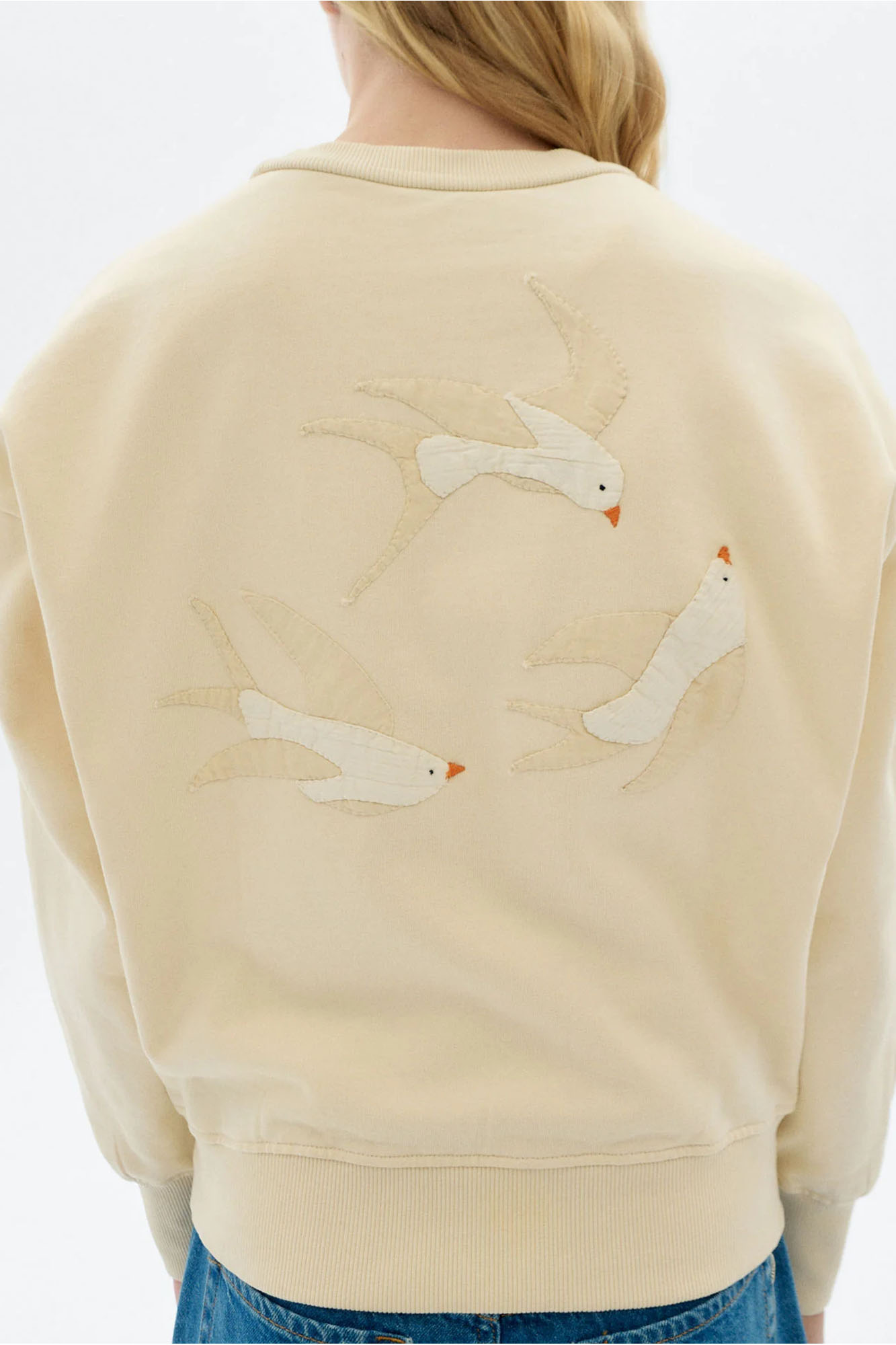 Sudadera en color crudo con un precioso aplique textil en la espalda estilo patchwork.