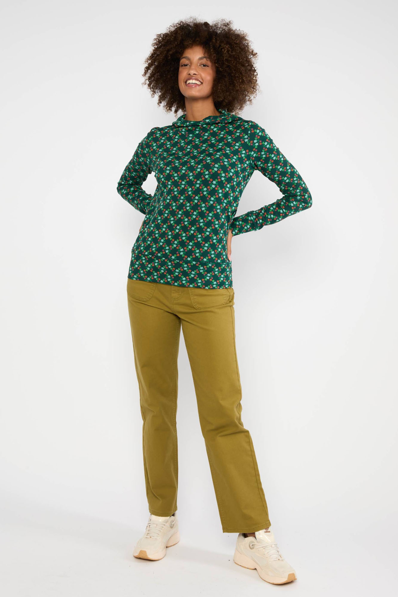 Sudadera de algodón orgánico en tonos verdes.