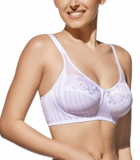 SUJETADOR SIN ARO QUE COMBINA UN ELEGANTE TEJIDO CON FRANJAS Y COPA EN TUL CON ENCAJE.