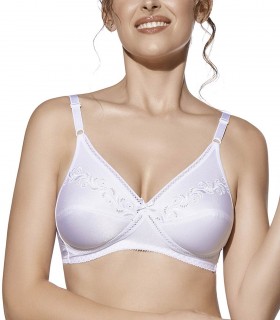 SUJETADOR CLÁSICO SIN AROS, CRUZADO Y FABRICADO EN TEJIDO SIMPLEX BORDADO.