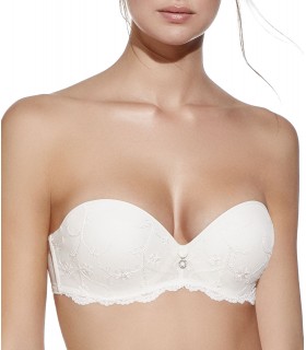 SUJETADOR PARA NOVIAS CON AROS, SIN TIRANTES COPA DE RELLENO DE DOBLE PUSH UP Y TUL BORDADO. INCLUYE JUEGO DE TIRANTES TEXTILES.