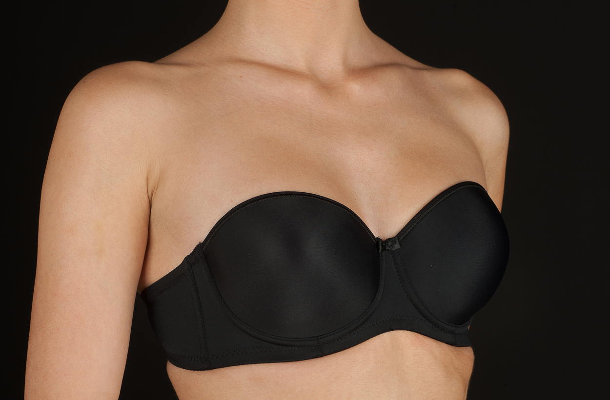 Sujetador con aros y copa de relleno sin tirantes.