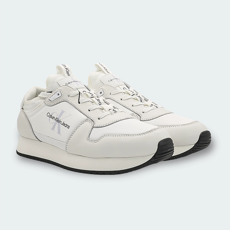 Los tenis retro de Calvin Klein destacan por su silueta inspirada en el running clásico, combinando parte superior de cuero con detalles modernos. Incorporan una plantilla de espuma cómoda, forro de malla de poliéster y una suela de goma resistente para mayor durabilidad. El diseño incluye un collar tipo calcetín que ofrece un ajuste ceñido y cómodo, mientras que los logos icónicos de Calvin Klein se encuentran en el lateral, la lengüeta y el tobillo. Ajuste fiel a la talla, ideales para un look casual con estilo y personalidad.