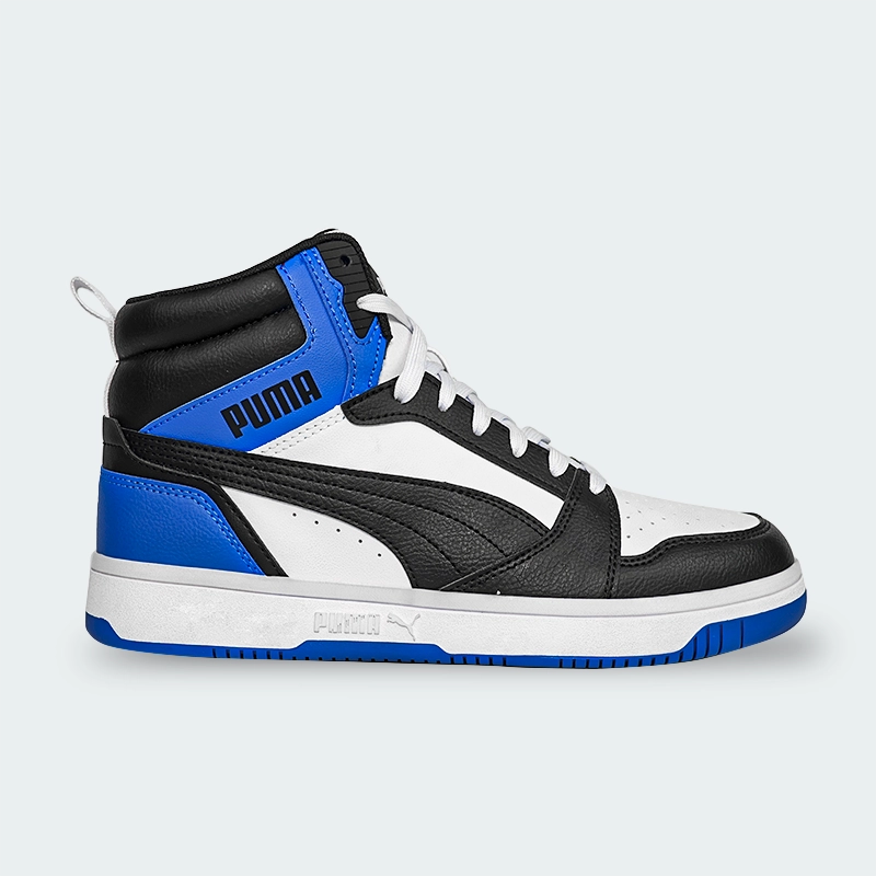Estos Tenis Rebound, que fusiona la estética retro con la nueva era del baloncesto, incorpora de manera destacada el distintivo ADN de PUMA.