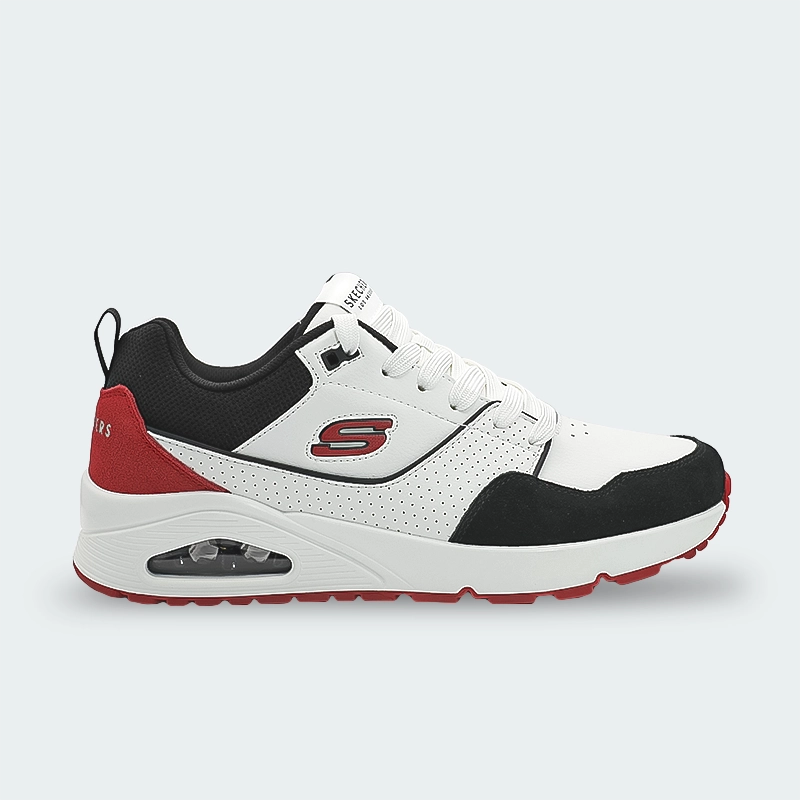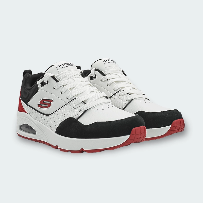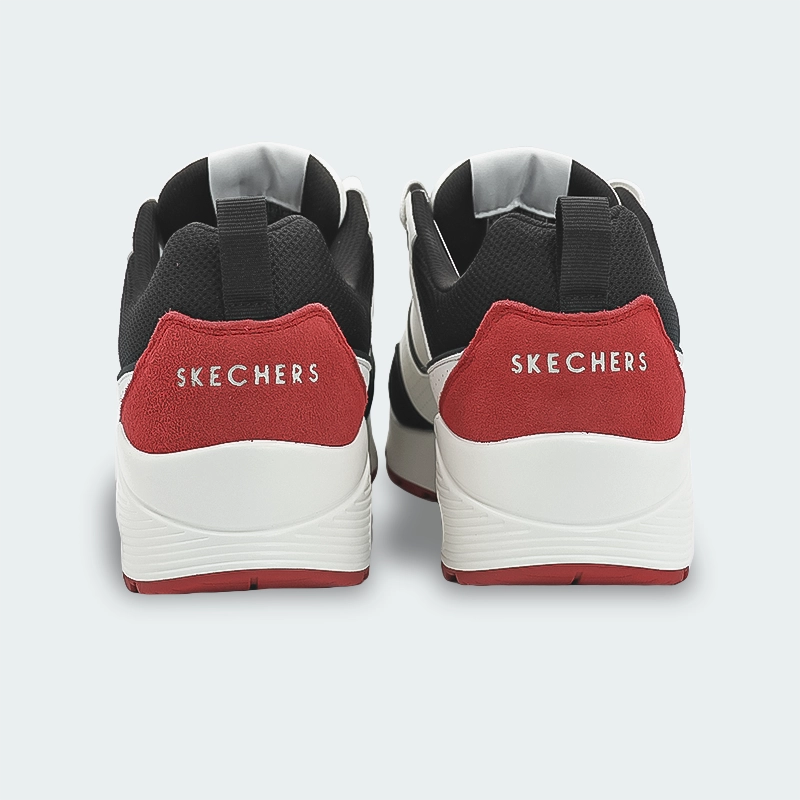 El estilo retro de los deportivos se une a la comodidad en los Skechers Street Uno – Retro One. Este tenis de estilo clásico con cordones presenta una parte superior de cuero de duraleather, cuero y ante con una plantilla Skechers Air-Cooled Memory Foam y una entresuela de airbag Skech-Air translúcida.